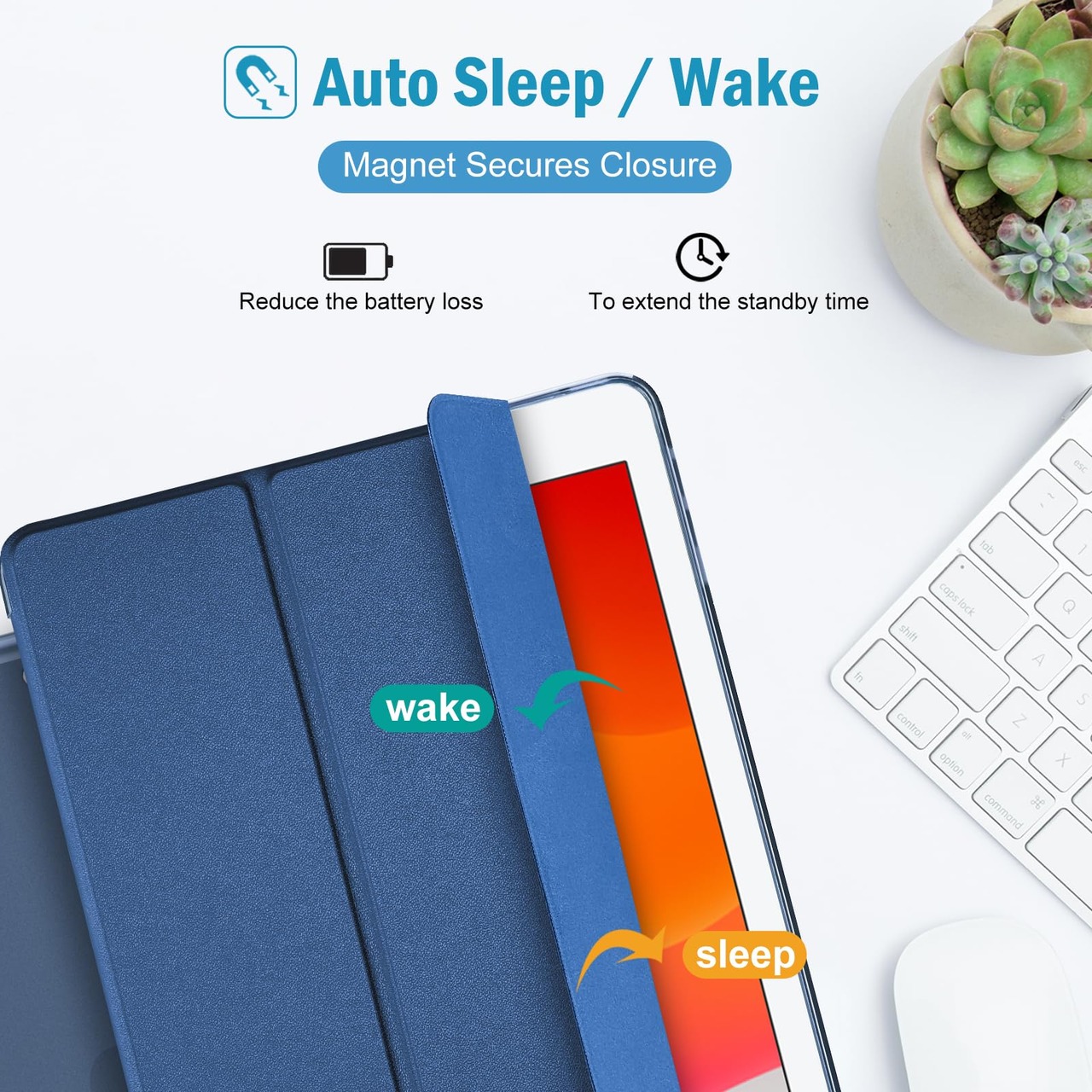 【自動睡眠・喚起】オートスリープ/ウェイクに対応します;マグネットがケースクロージャーを固定し、開閉も簡単。