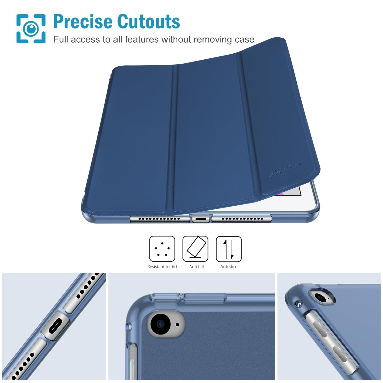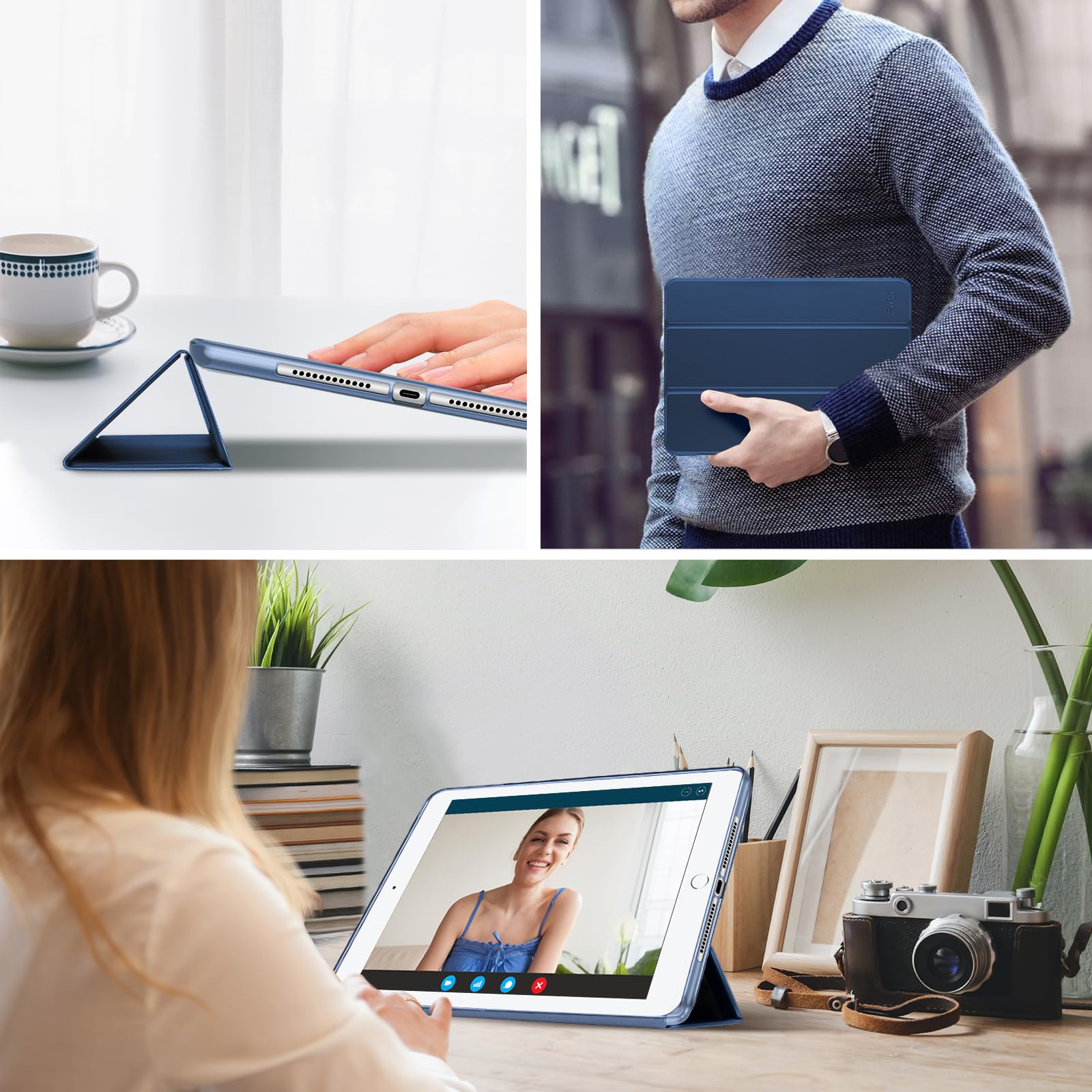ProCase iPad 9.7 ケース、iPad 6世代 2018/ 5世代 2017 iPad Air 2 1 保護カバー 3つ折り スマートケース TPUバックカバー スタンド機能 - ダークブルー