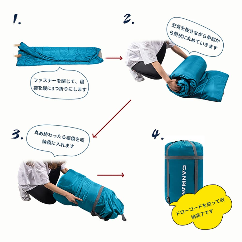 CANWAY 寝袋 2人用 防水シュラフ スリーピングバッグ 封筒型 キャンプ 連結解体可能 車中泊 防災用 災害時 避難用 コンパクト 最低温度0度 枕2つ・収納パック付 丸洗い 3カラー選択可能