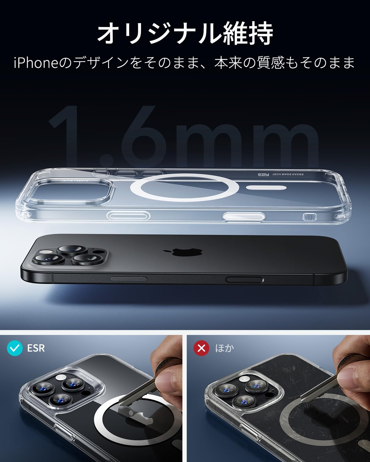 ESR iPhone16ProMax ケース【カメラコントロール保護 ・3倍米軍MIL規格】 MagSafe対応 いphone16promax 用 カメラボタン 黄変防止 耐衝撃 軍用規格保護 指紋防止 高耐久性 マグネットスマホケース ワイヤレス充電対応 クリア iphone16promaxケース Classicアイフォン16プロマックスケース (HaloLock) 透明