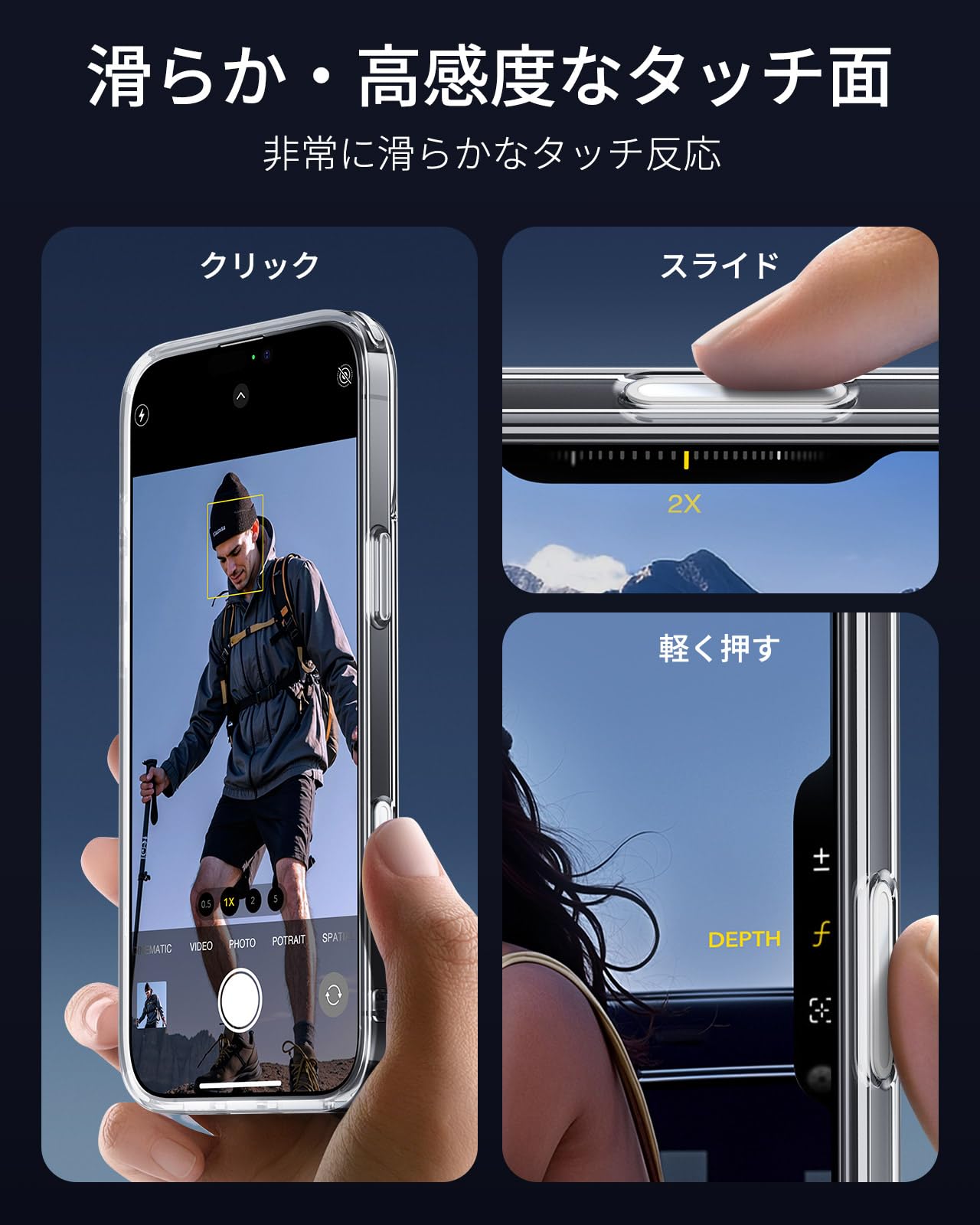 【プロのように滑らか!スライド式カメラコントロール】 iPhone 16 Pro Max ケースの革新的なカメラコントロールボタンを専用カバーで守りながら、指先に伝わるプロ級の操作感をそのまま体感できます。スライド時の滑らかな動きから押圧時の確かな反発感まで、本体と遜色ない精密なタッチレスポンスを実現します。ボタン周辺の隙間を完全に封鎖する設計で、ほこり侵入を徹底シャットアウトします。精密センサーを埃のストレスから守り、シャッターチャンスを逃さない快適操作を長く支えます