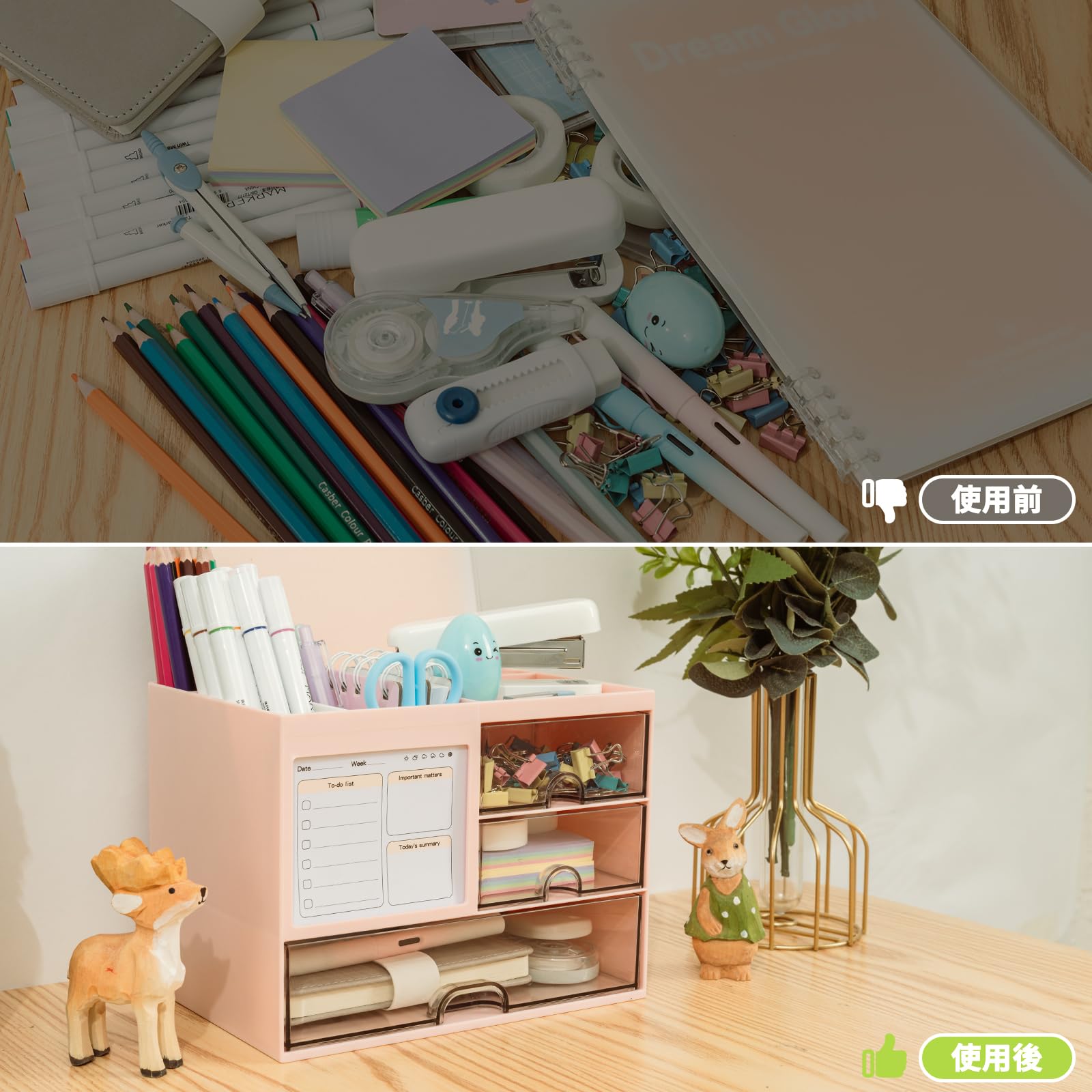 ️【便利収納ケース】この卓上収納は設置が不要で、単なるデスクトップ文具収納以上のものを提供します。 透明な引き出しなので中身が見やすく、必要なアイテムを簡単に見つけることができます。 さらに、デスクオーガナイザーを利用して、他の日用品を手の届くところに保管することもできます。