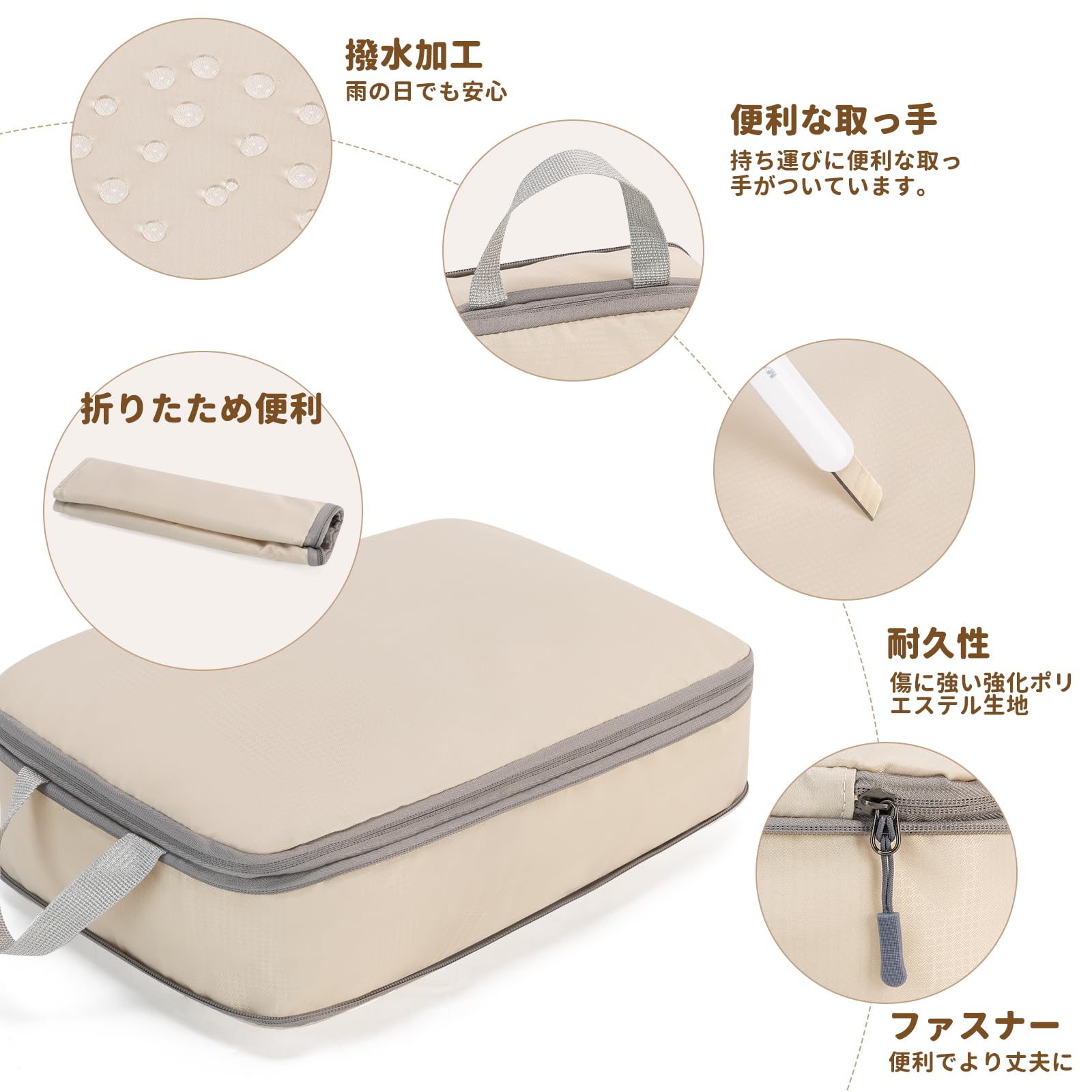 旅行用圧縮袋 トラベルポーチ 6点セット ファスナーで簡単圧縮 50%スペース節約 衣類収納 温泉 旅行 出張 便利グッズ ポーチ 圧縮収納ポーチ (ベージュ)