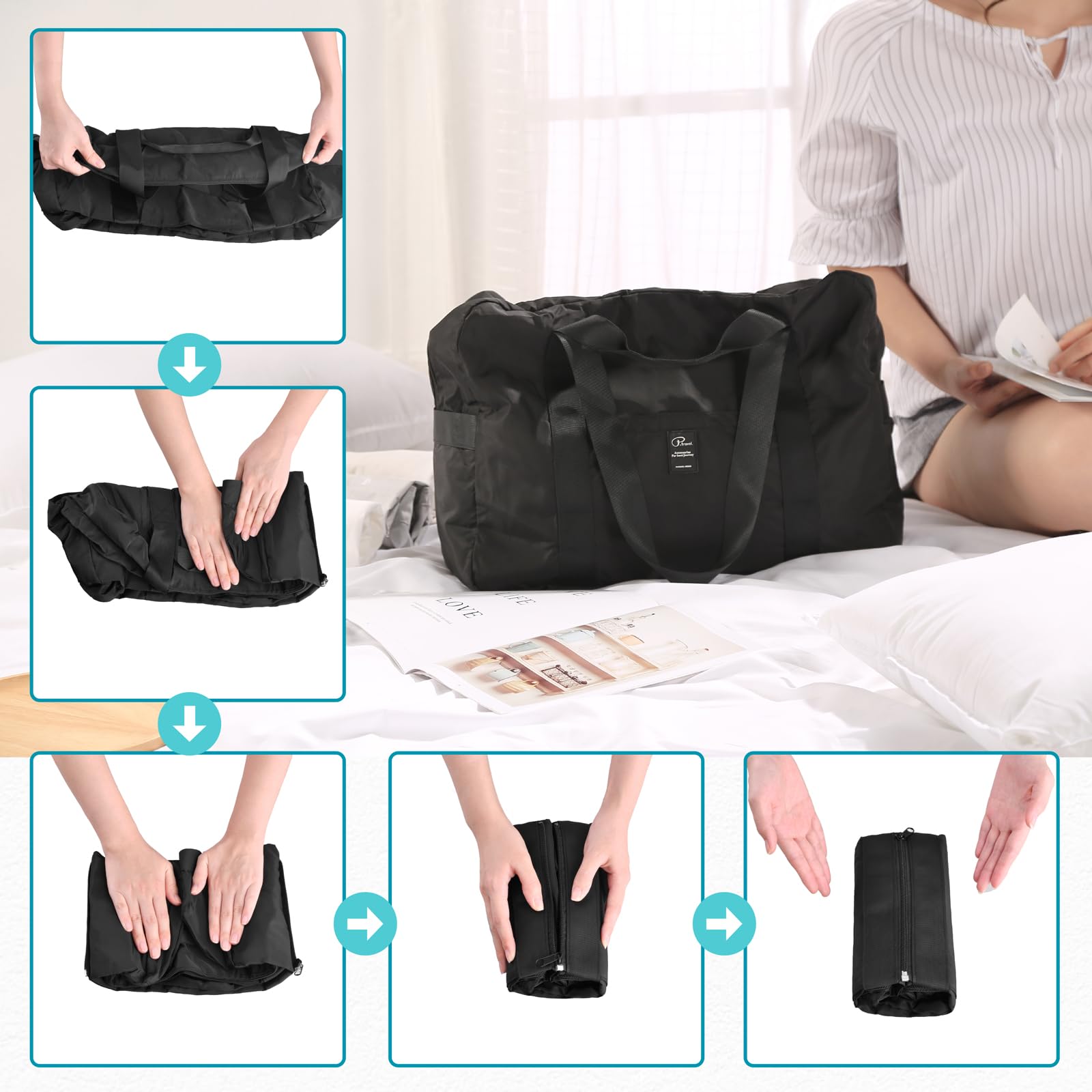 【折りたたみコンパクト】専用ファスナーで畳むとペットボトルサイズ(約20×9cm)に。スーツケースの隙間やデイパックに収納可能で、荷物が増えた時にも即展開可能