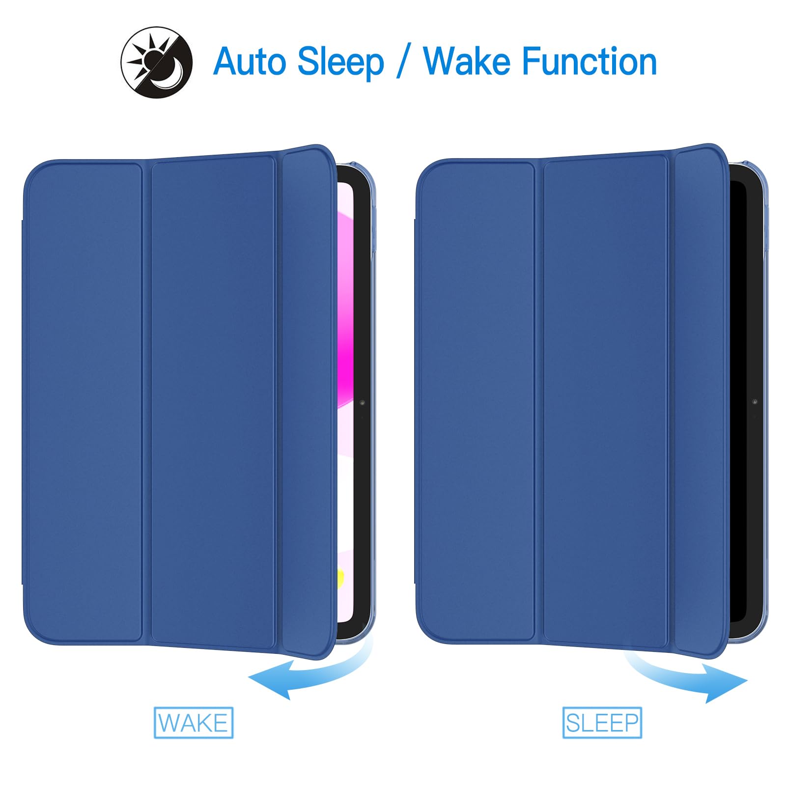 【新春セール】JETech iPad(A16)ケース 第11/10世代(2025/2022モデル)用スリムスタンドハードバック ウェイクアップ/オートスリープ機能付き タブレットカバー (紺)