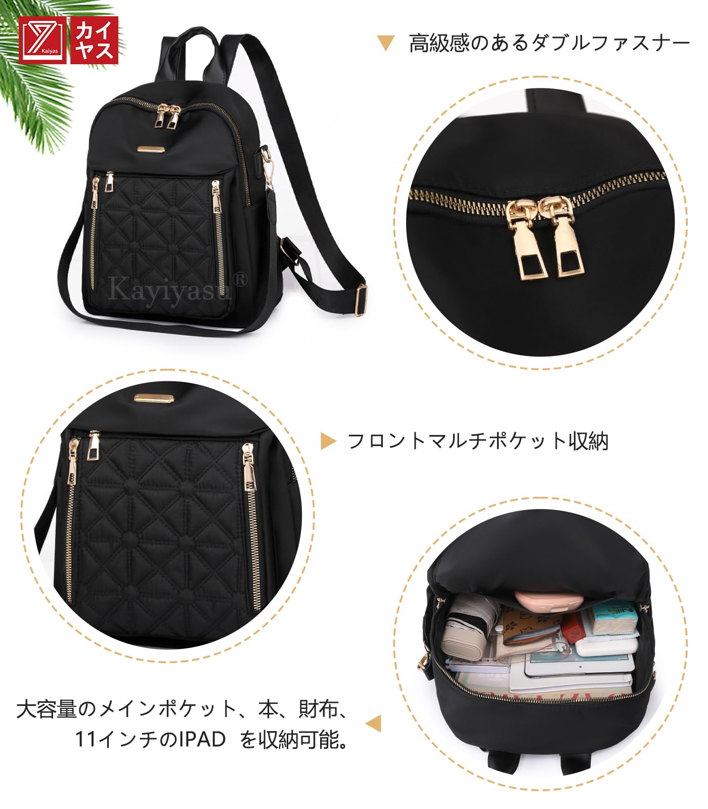 上質な生地:レディースリュックサックは最高の生地のデザインで作られ、上質なナイロン生地、撥水性、肌に優しい、しなやかで、色褪せない、生地全体が高級感があり、お出かけコーディネートも全体的にエレガントに見えます。 重量:0.43kg、遠足や通勤の女性にぴったり、ちょうどいいサイズのバックパックは、必要な物を簡単に入れることができ、上品でエレガントです。