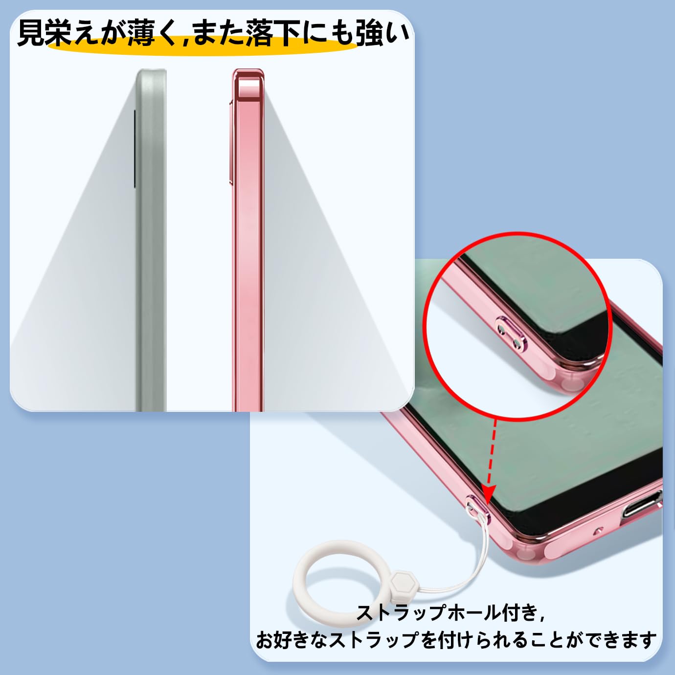 【極薄・軽量・超柔軟・360° 全方位保护】柔軟性が高いドイツ製脂肪族TPU素材を採用し、着脱が簡単で変形しにくく、本体に傷つけなく、ご愛機に最も優しいケアを与えます。ベタつかず適度な柔らかさで、滑りにくく持ちやすいです。フチをわずかに高く設計することで、スマートフォンを平らな場所に置いたときにスクリーンやカメラがこすれて傷つくのを防ぎます。大切なAQUOS wish3を突然の落下やショックから保護します。前面と背面はデバイスよりも高く設計されており、液晶画面とカメラレンズを保護します。 ホストの包括的な保護。