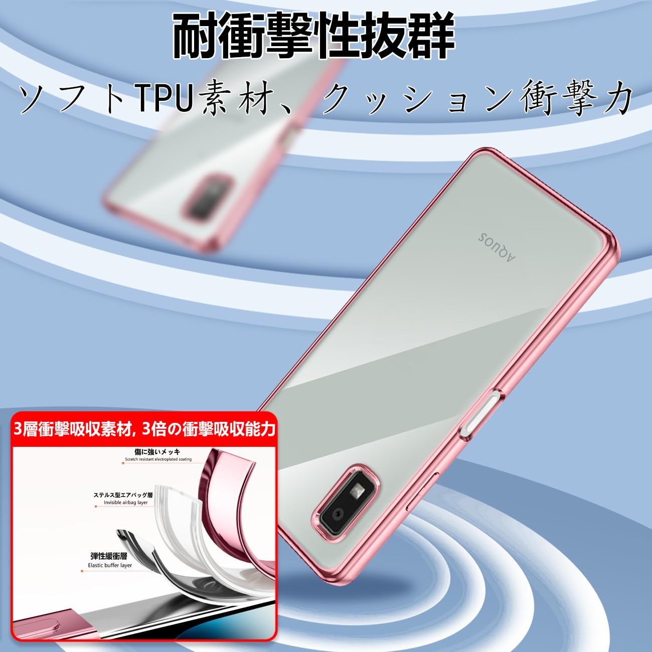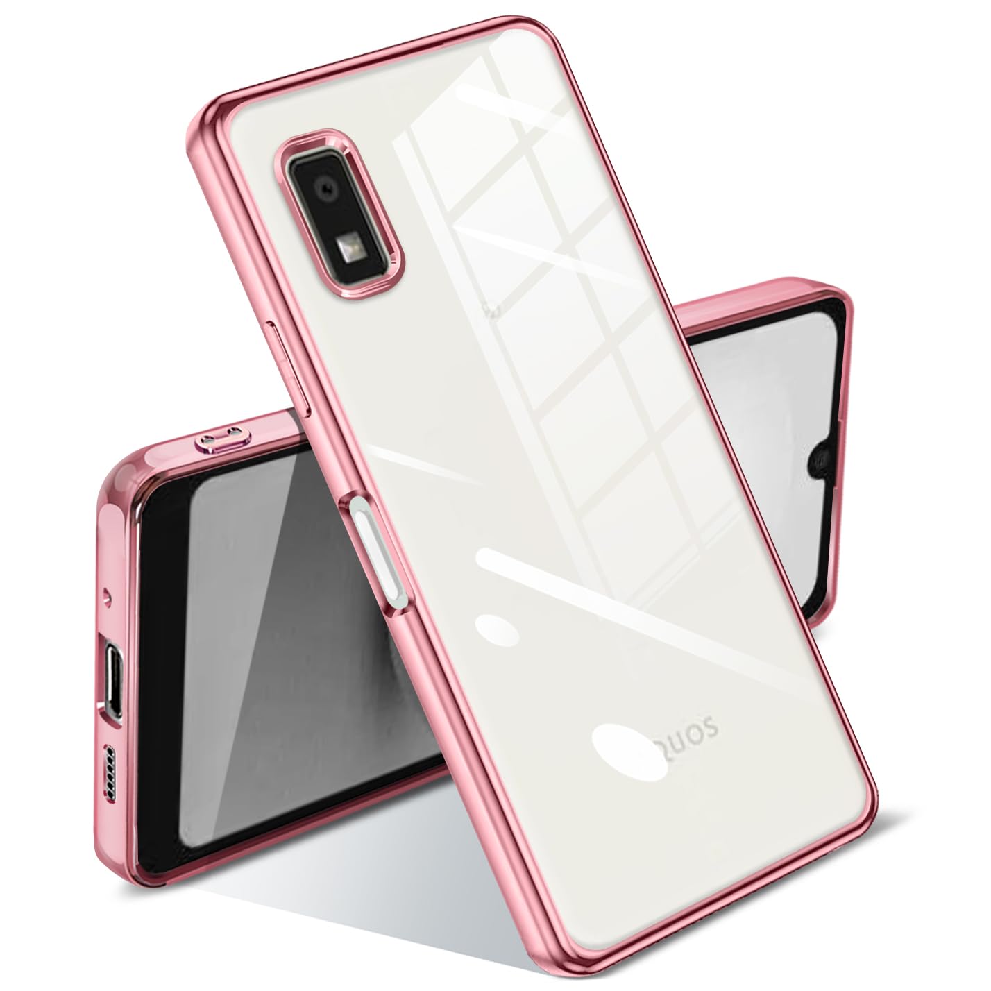 AQUOS wish3 ケース クリア 耐衝撃 SH-53D A302SH カバー 透明 メッキ加工 柔らかい 薄型 ファッション 人気 滑り止め 黄ばみ防止 指紋防止 軽量 TPU ソフトケース 保護カバー(ローズゴールド)