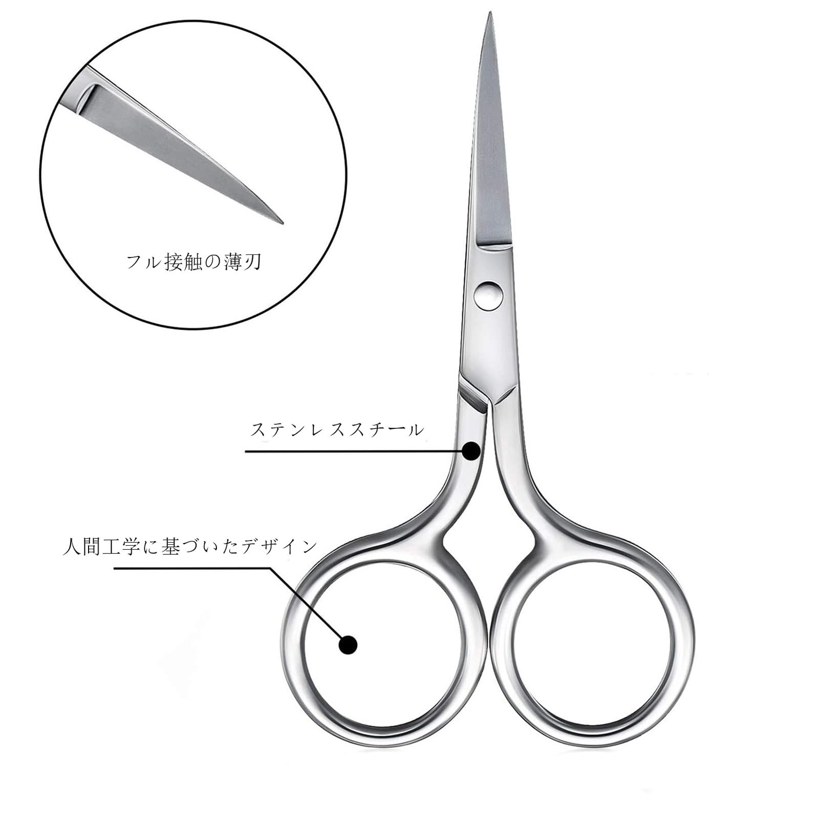 精密眉毛カット 顔面毛髪ハサミ 鼻毛とひげ剪定器 眉毛整形つげカット用 ミニハサミ ステンレス製 多対応