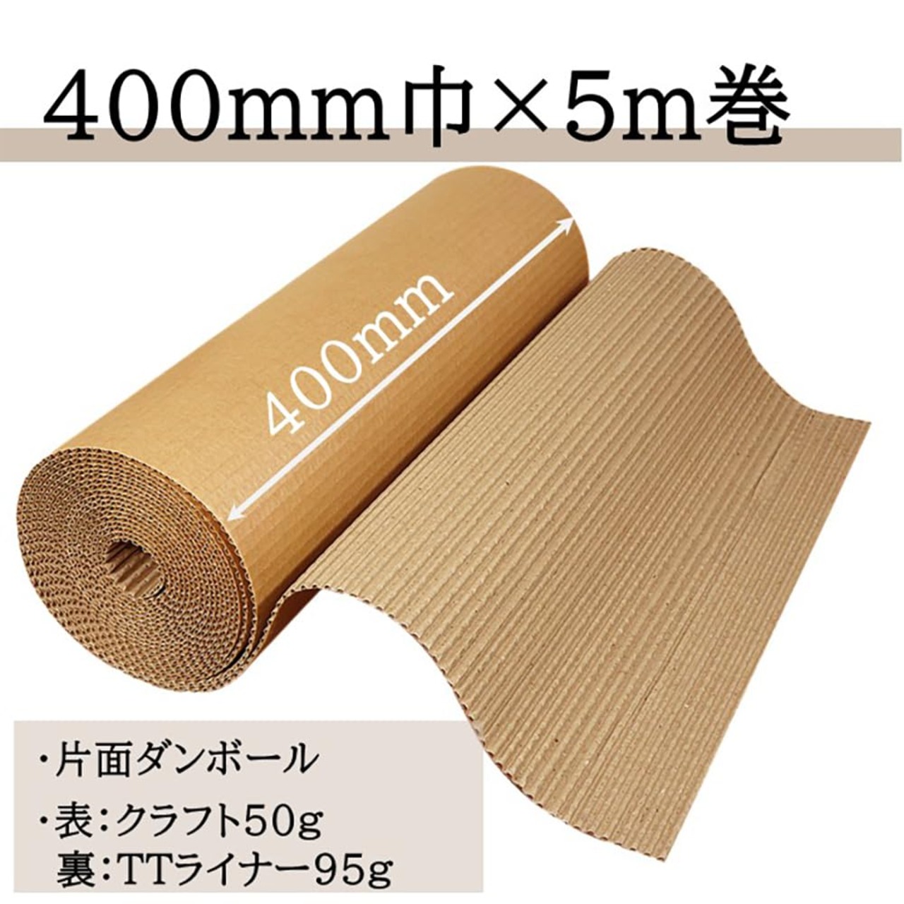 日本製 巻き段ボール (幅400mmx長さ5m) 3mm厚 片面 段ボール 巻きダンボール 引越し 養生 梱包