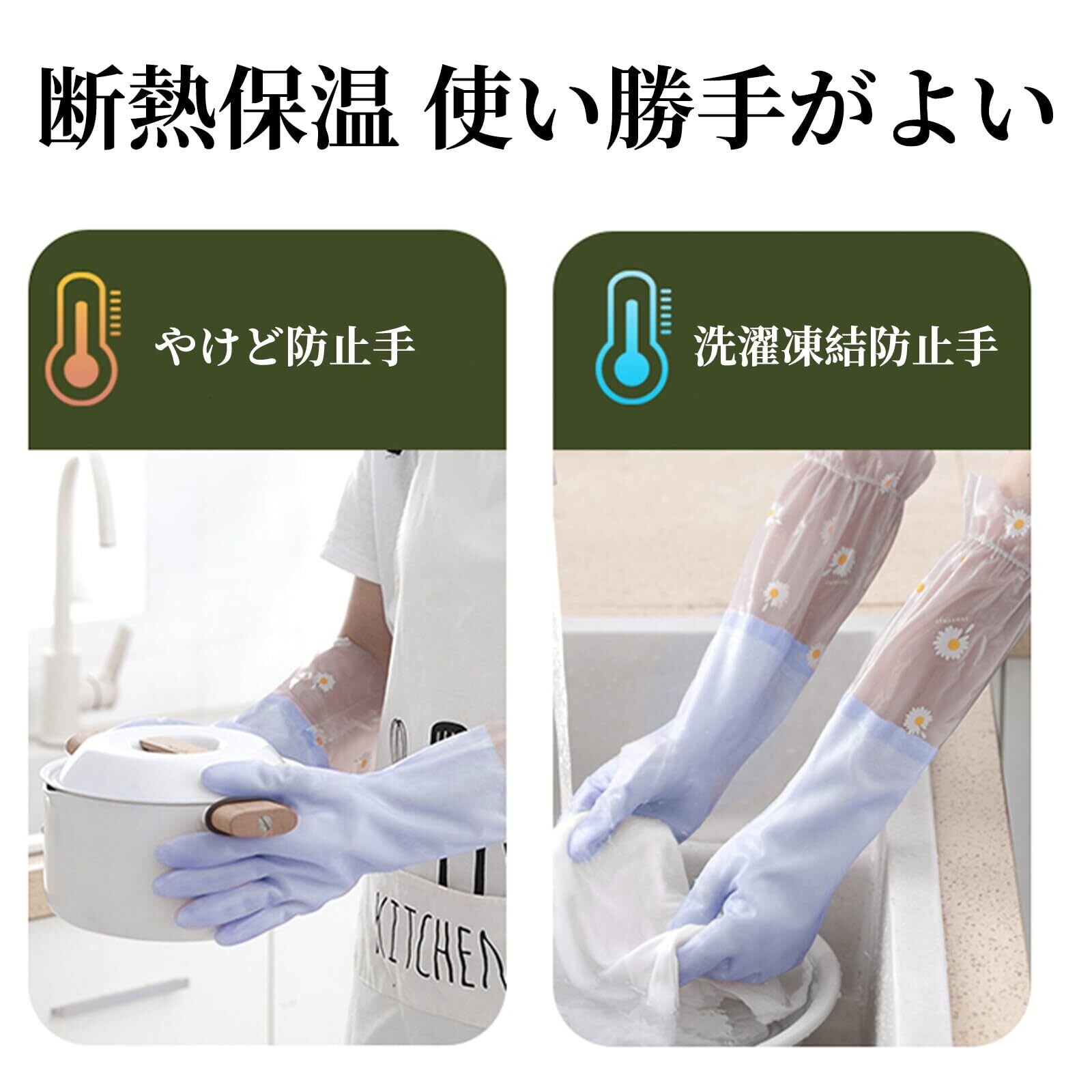[nalaina] ゴム手袋 家事用ゴム手袋 キッチングローブ ロング 長い 食器洗い手袋 防水手袋 作業手袋 裏起毛 厚手 滑り止め 洗車 洗い物 洗濯 園芸 炊事 家事用 掃除用