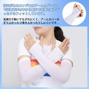 【伸縮性抜群でフィット感バツグン】ロング冷感アームスリーブは伸縮性に優れた素材を使用し、装着時肩下まで伸縮可能で腕にぴったりフィットできます。肘の動きを妨げず、スポーツや作業中も快適にご使用いただけます。指掛けアームカバー なのでずり落ちにくい設計で、着用ストレスを軽減します。