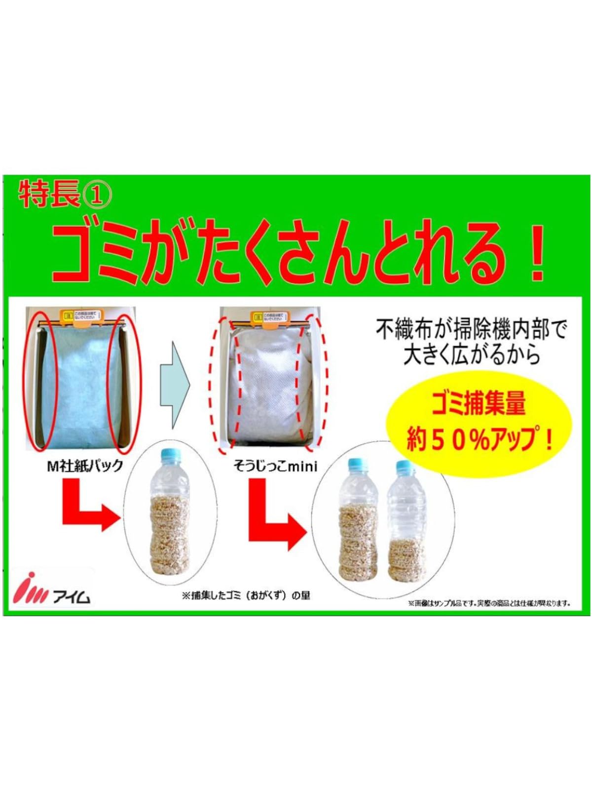そうじっこ MC-T1010mini(S) ●不織布タイプだからムダなくふくらむ 1.ゴミがたくさん取れる 2.細かいゴミもしっかりキャッチ 3.吸引力が落ちにくい