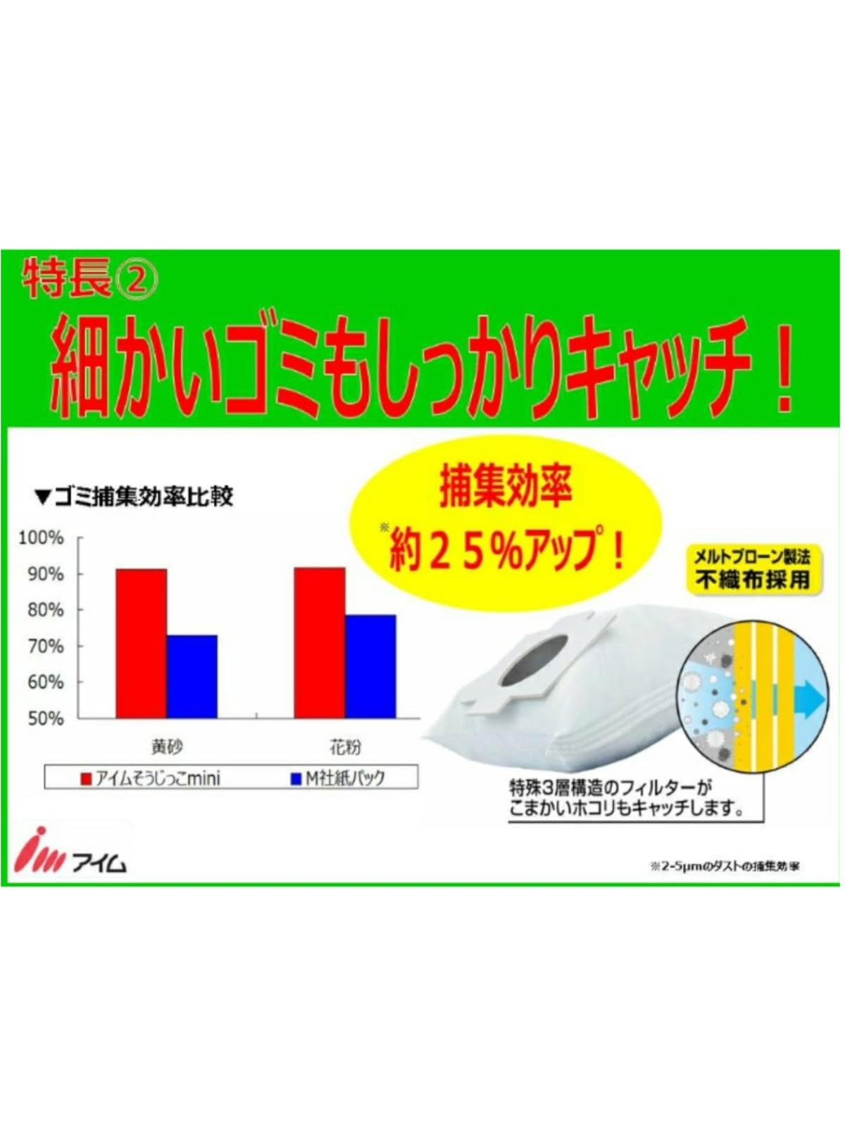 特殊3層構造フィルターで細かい埃もキャッチ