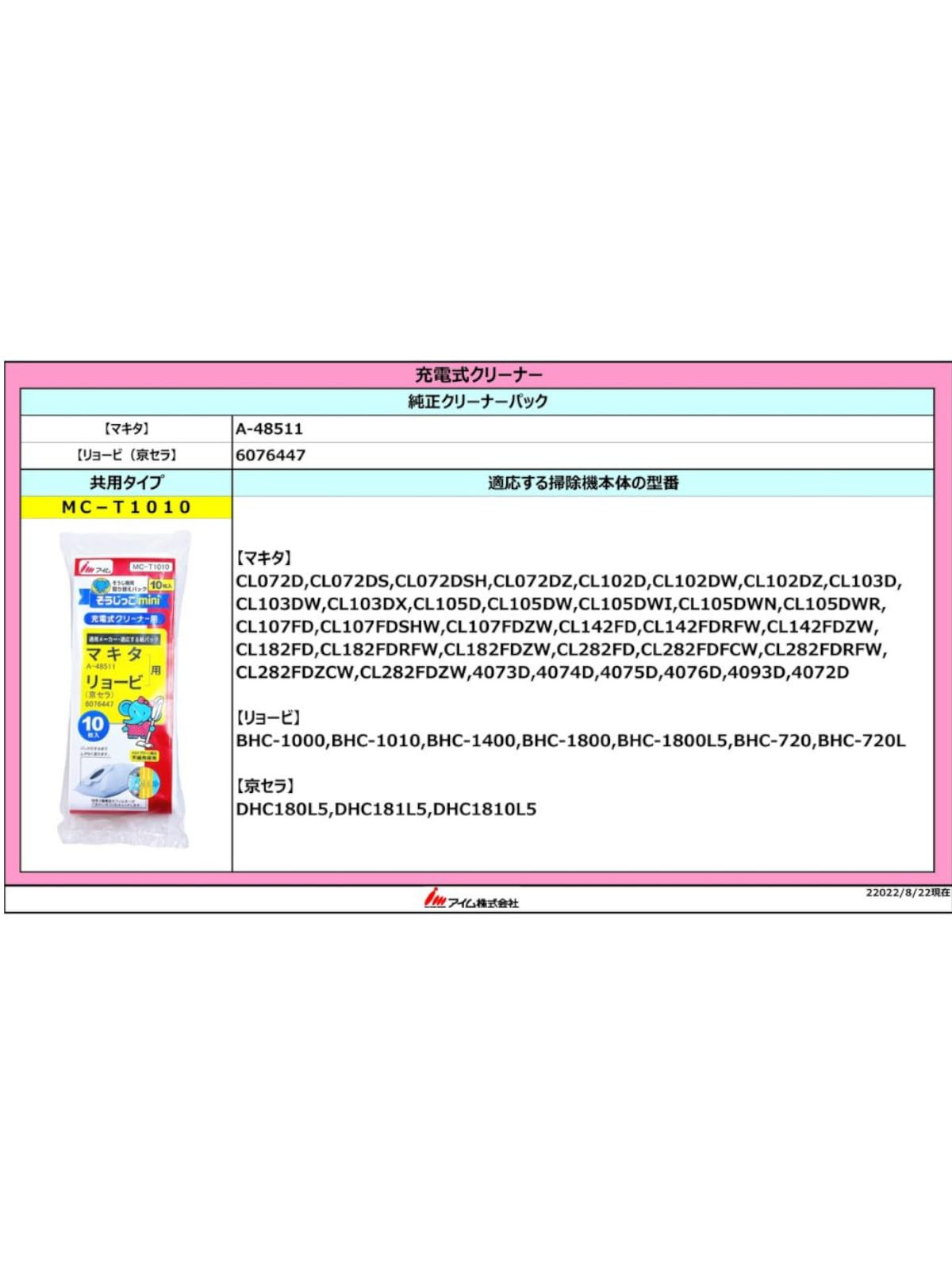 【2022最新】アイム マキタ 充電式用クリーナー用 紙パック 10枚 そうじっこmini リョービ