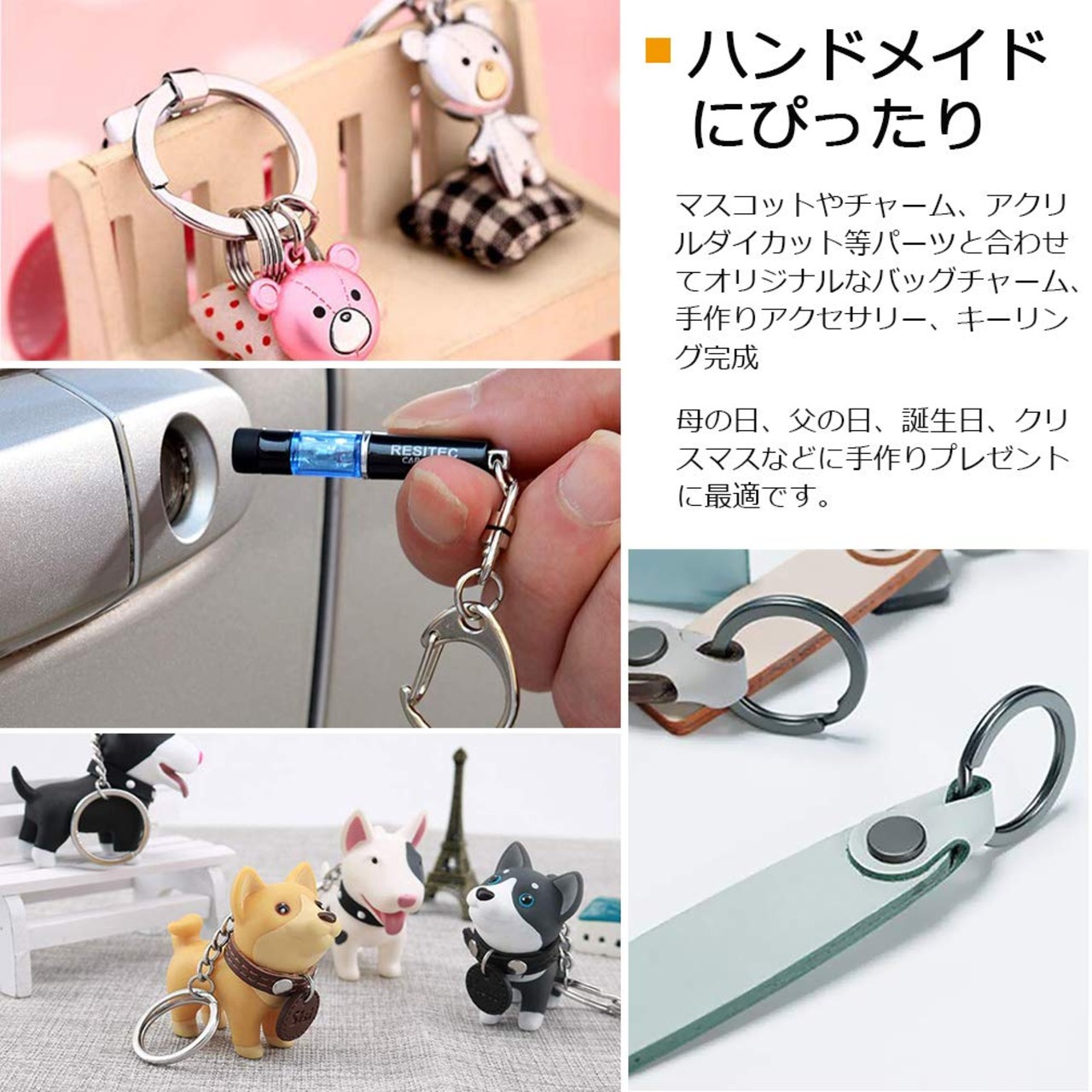 『DIY向け』ナスカンと回転カンと丸カンの組み合わせにより、直接にキーホルダーとして使用できます。また、自分で作ったマスコットなどを付ければ、世界中に一つだけのオリジナルキーホルダーになります。