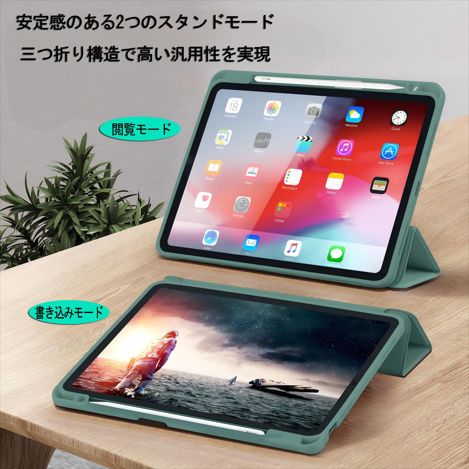 【ペンホルダー】また便利なペンホルダーがあるので、紛失しなくで安心して使えます。第二世代 Pencilワイヤレス充電対応、側面に切り口があり押すだけで簡単にペンを取り外しができる、いつでもどこでもiPadを快適に使えます。