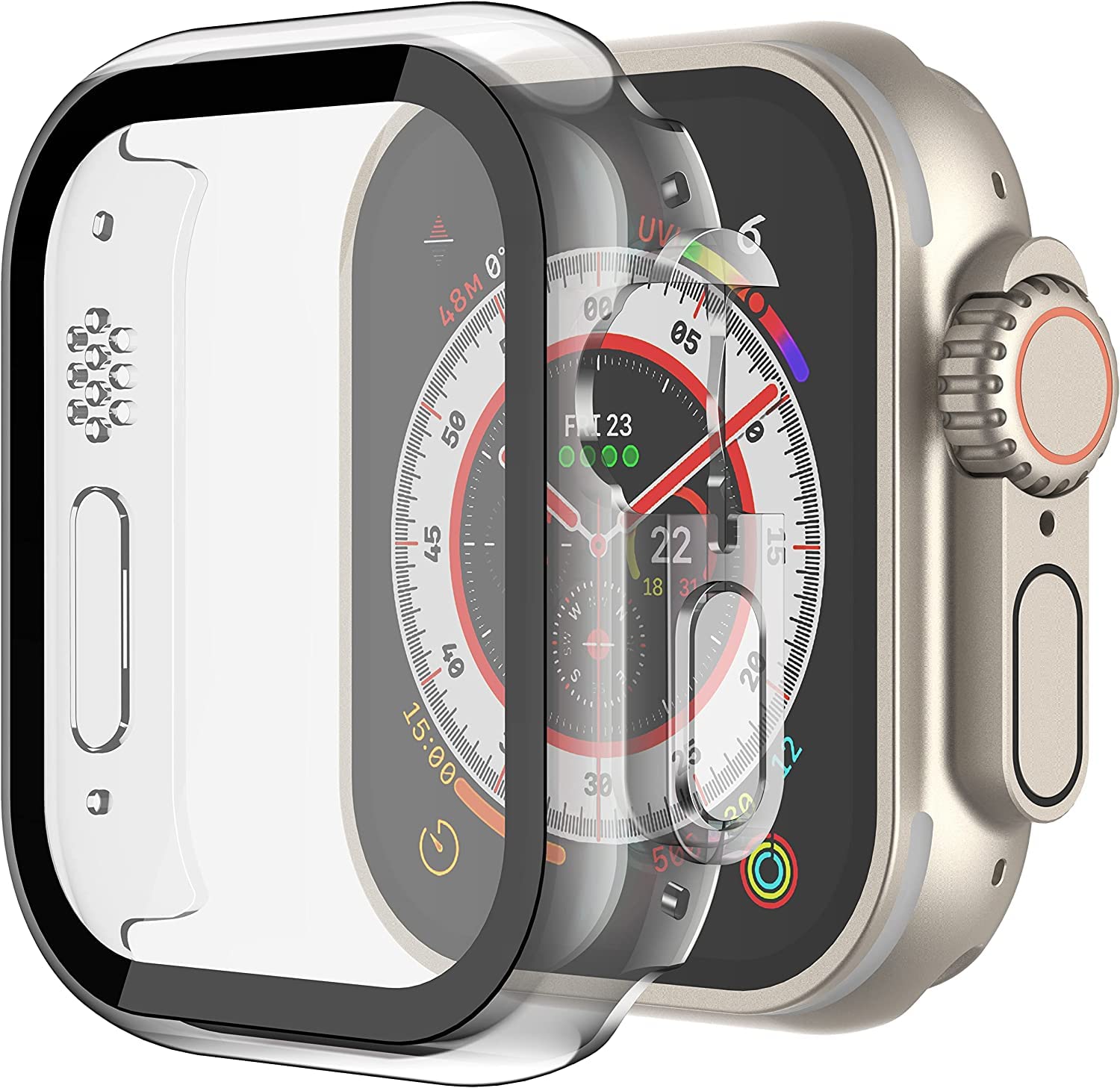 【在庫セール】ULOE 対応 Apple Watch Ultra 2 / Ultra 49mm 用 ケース 対応アップルウォッチ Ultra 2 / Ultra 49mm 保護カバー 超薄型 高透過率 傷防止 ガラスフィルム 一体型 PC素材全面保護(クリア)