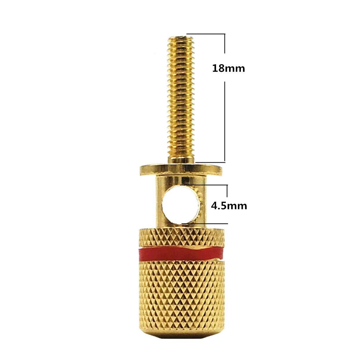 GeeSo 8個 34.5mm 真鍮 金メッキ スピーカーターミナル バインディング ポストバナナプラグ対応 赤4 黒4 配線接続