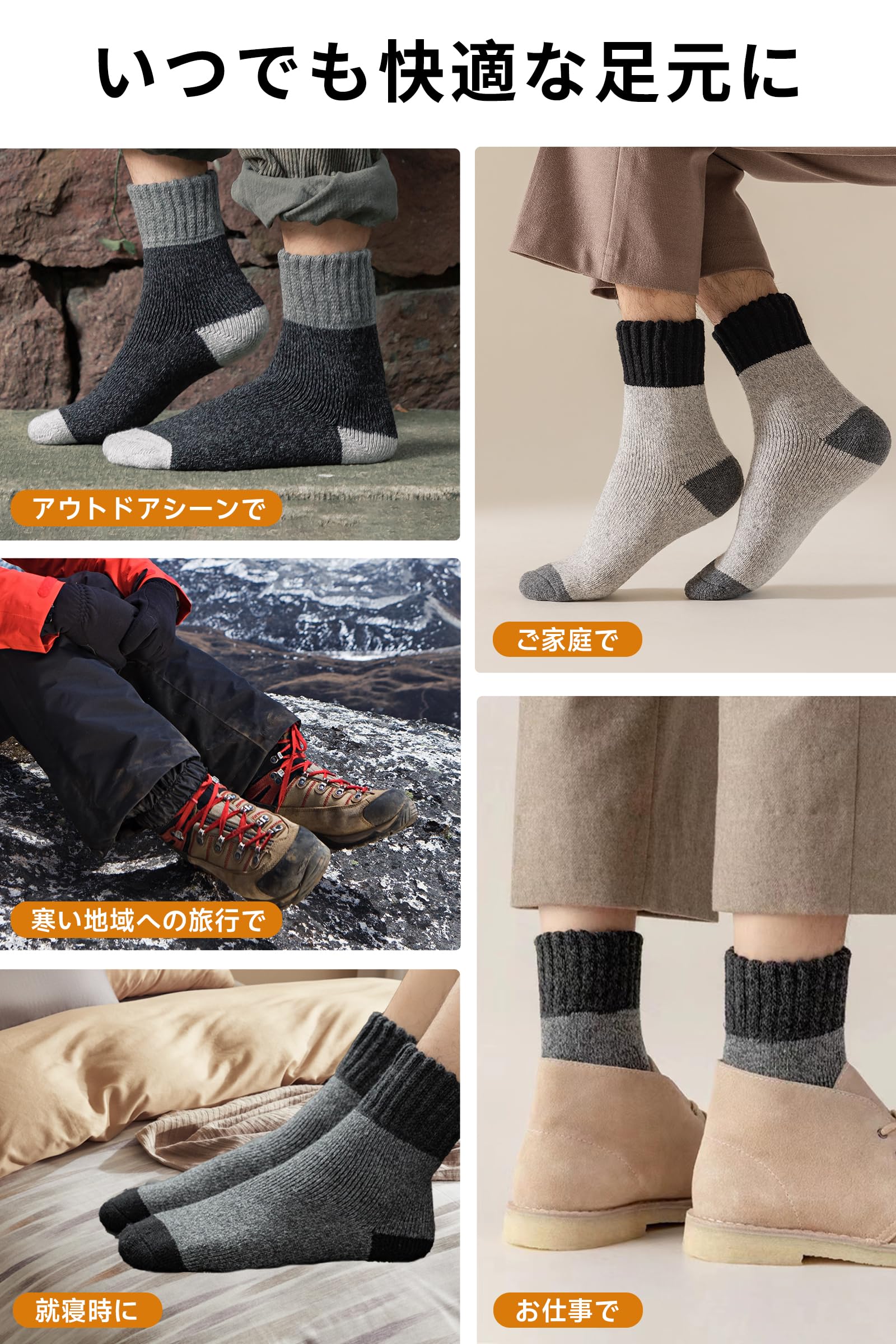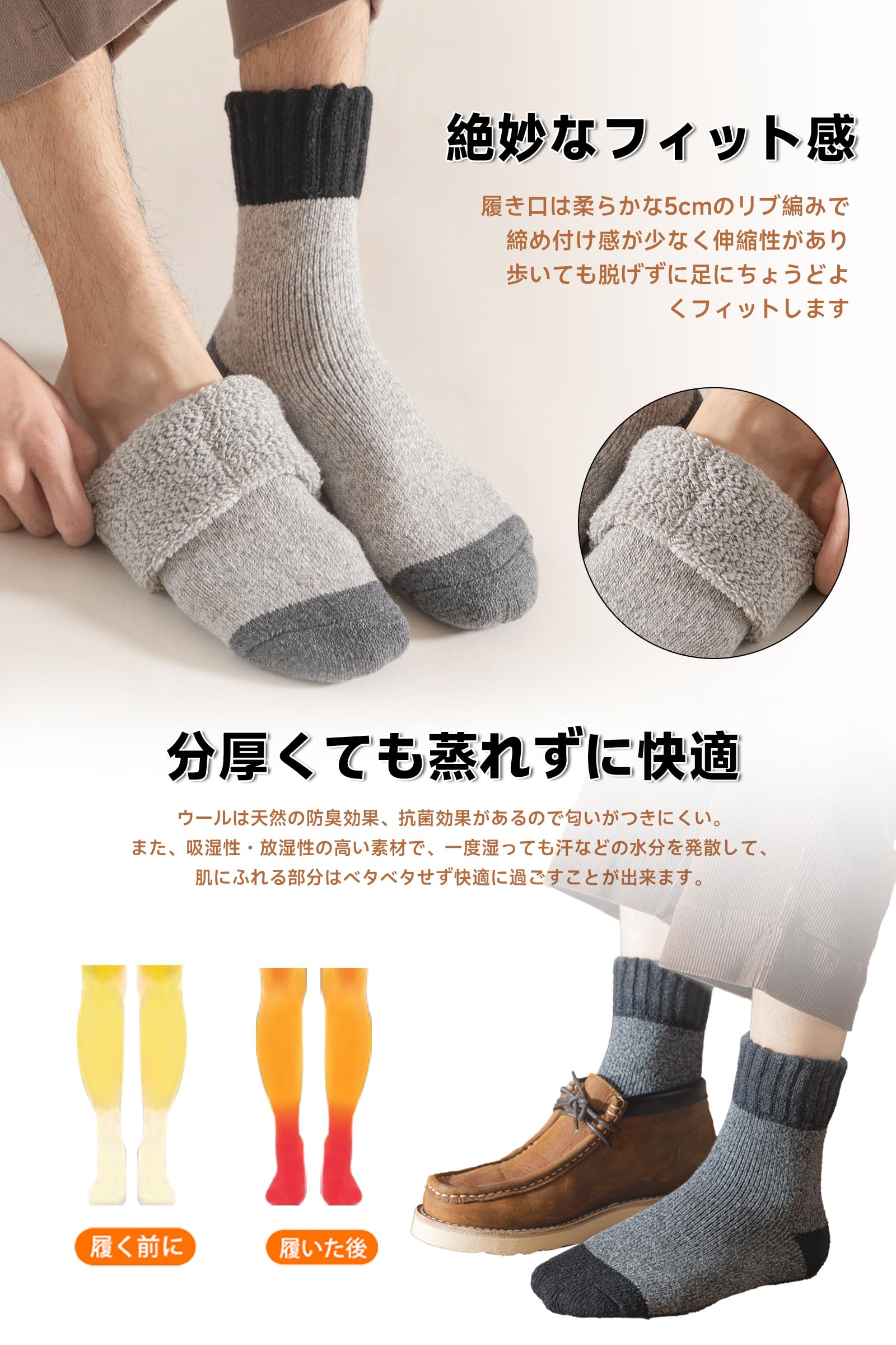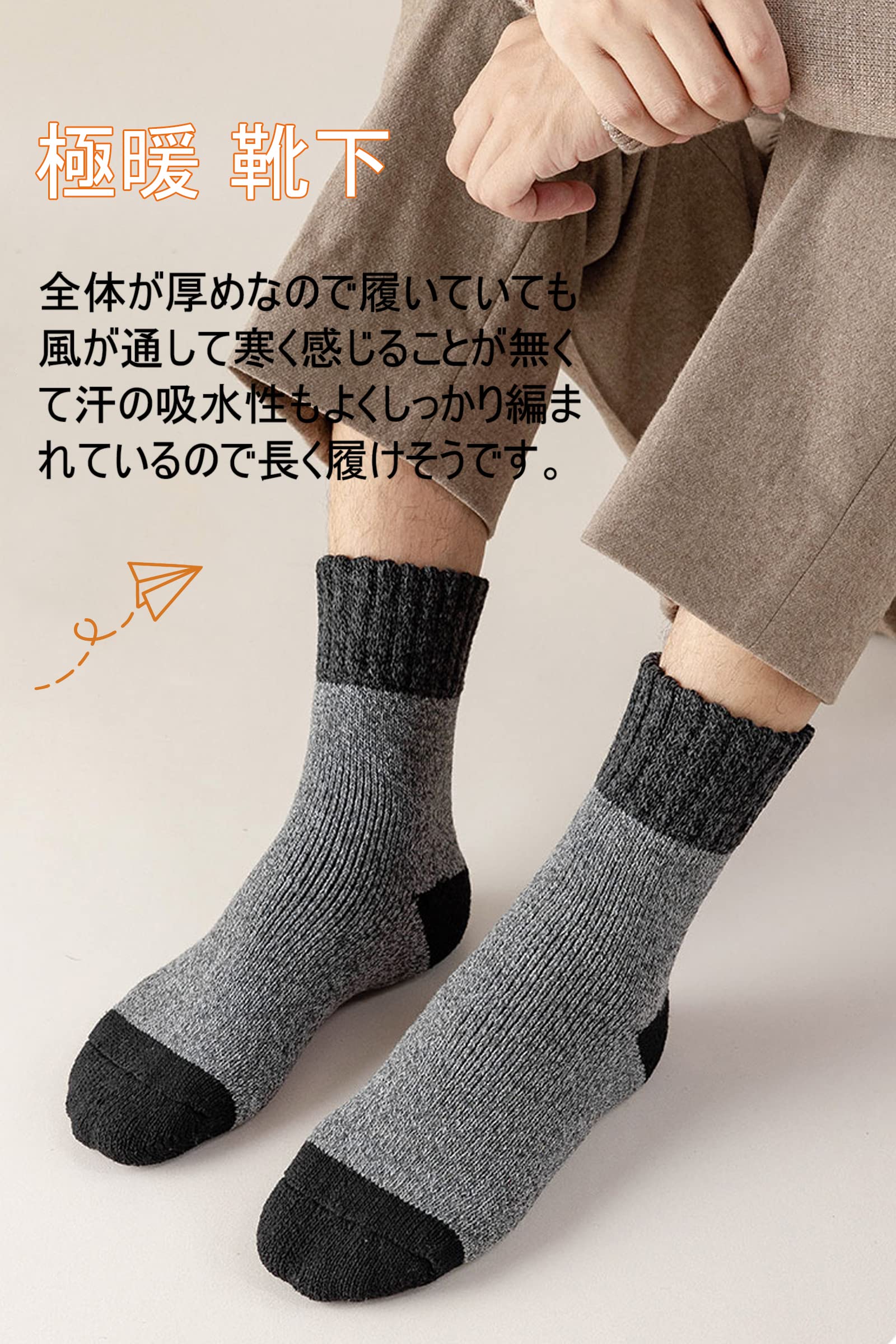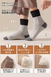 [Caudblor] ウール 靴下 メンズ 防寒 厚手ソックス ウールソックス 冬用 靴下 厚手 極暖 暖かい 防寒ソックス 厚 室内 吸汗 防臭 通気性 3足セット 25-28cm