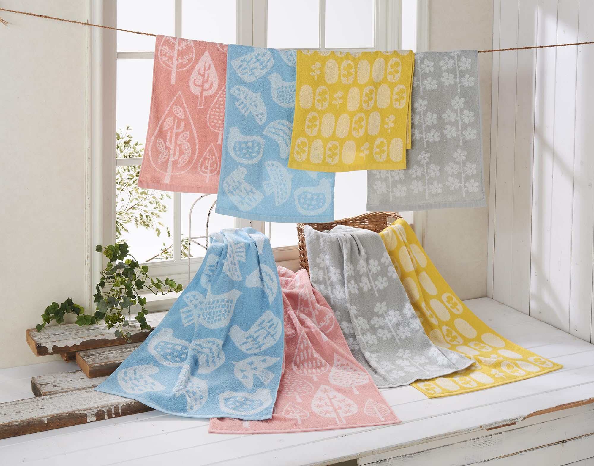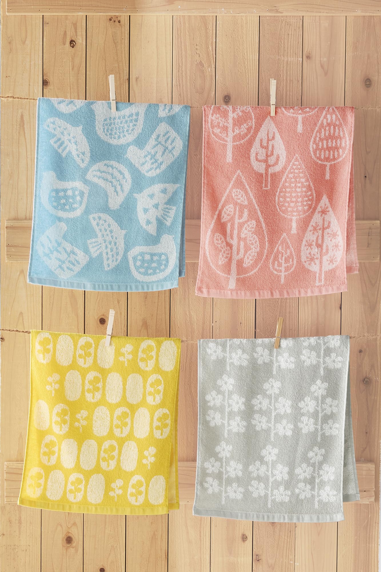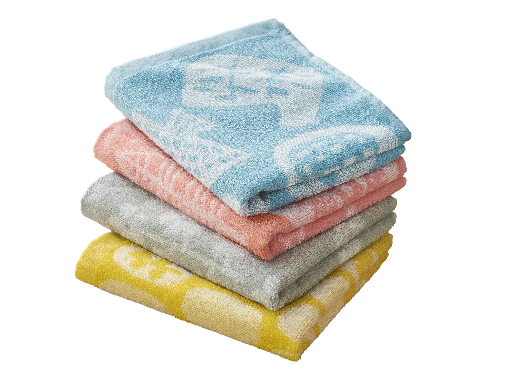 Kosugizen フェイスタオル 北欧調ジャガード マトカ 4色(4柄)各1枚入 34×80㎝ 北欧風モチーフ 乾きやすい薄手タイプ 4枚セット SV-2321-4