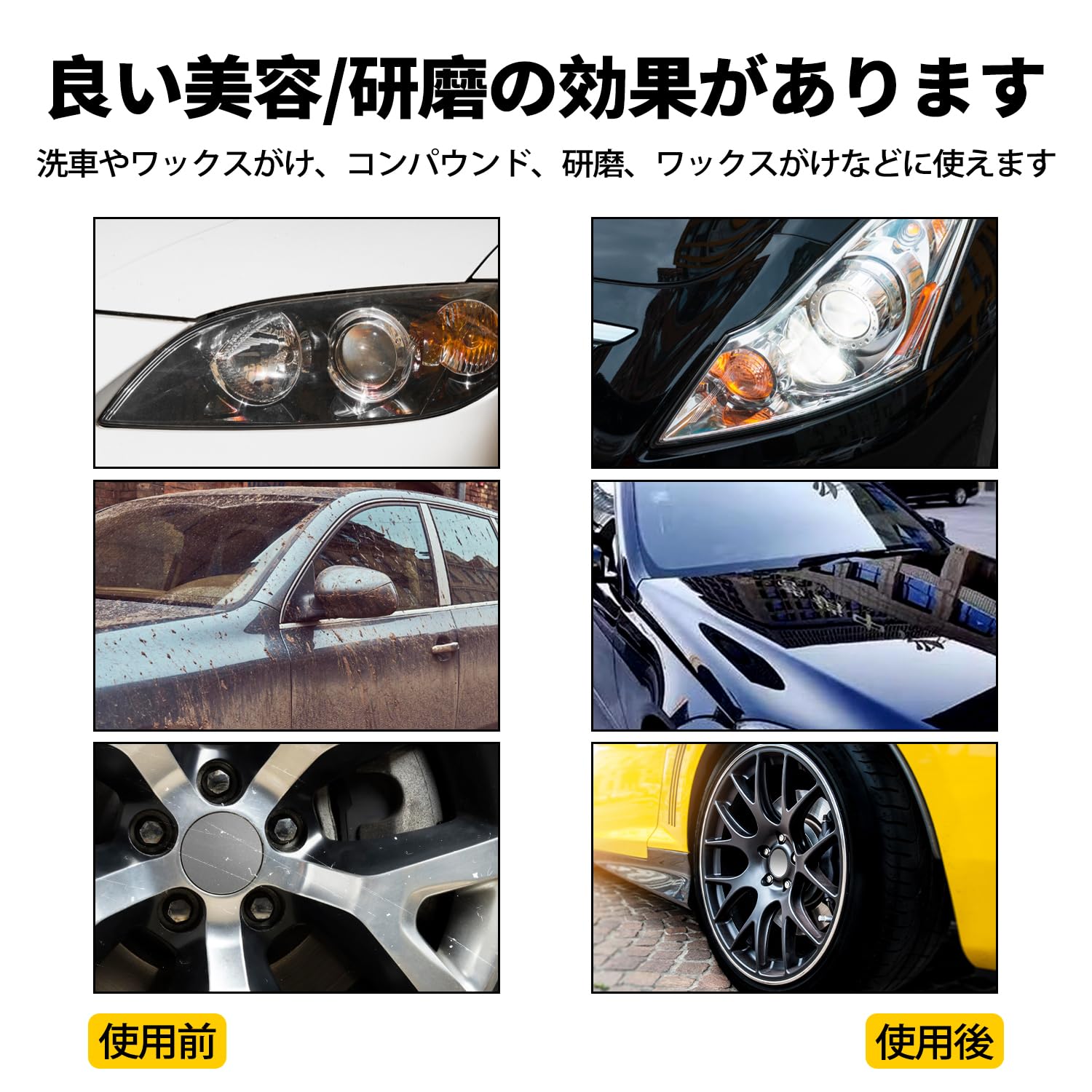 【耐久性抜群、洗浄効果最高】電動ポリッシャー ウレタンバフの耐久性が優れた、洗濯後の再利用が可能です。極細用スポンジバフは優れた洗浄効果を発揮し、目が見えないごく小さな汚れを効果的に取り除きます、愛車の水垢落とし・磨きに!