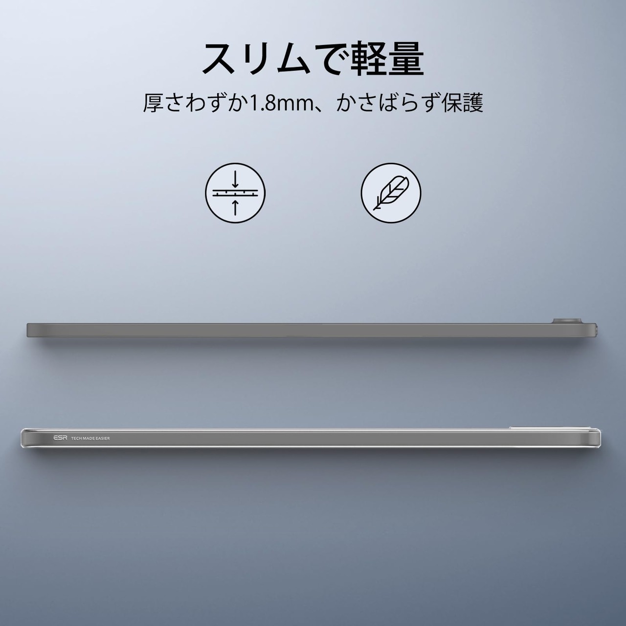 【スリムかつ軽量】:軽量な背面のみのデザインで、かさばることなくiPadを保護し、柔らかいゴム感素材がiPadに傷を残すことなく最大の耐久性を提供します