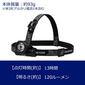 明るさ:120ルーメン、使用電池:単3形アルカリ電池×1本