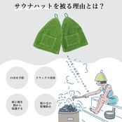 【髪と頭皮を守る】濡れた髪は熱で傷みやすく、かゆみの原因のひとつになります。サウナハットをかぶることで、熱ダメージから髪と頭皮を守ることができます。サウナの翌日も頭が痒くなる心配はありません。