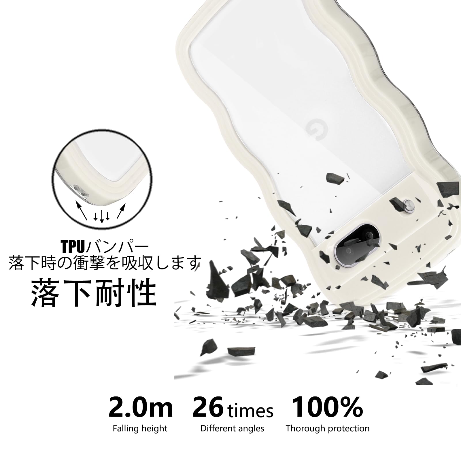Google Pixel 7A ケース クリア ウェーブ ピクセル 7a TPU波状フレーム うねうね グーグル ピクセル7A 滑り止め スマホケースウェーブ デザイン 手にフィット 韓国 可愛い 女性用 女子向け 透明 ケースカバー 人気 落下防止 耐衝撃 ストラップホール付き グーグルピクセル7a なみなみ ワイヤレス充電対応(Google Pixel 7A-ホワイト)