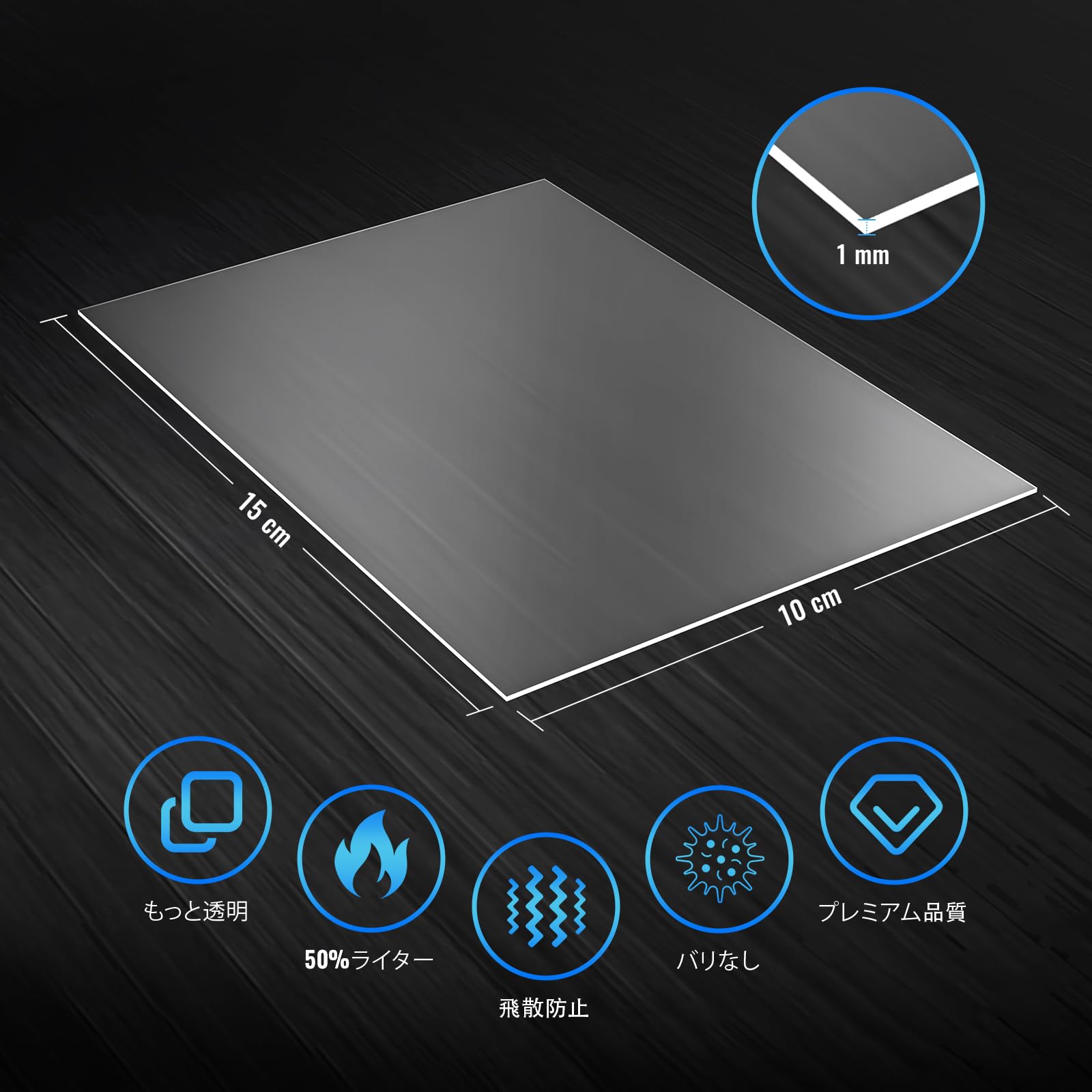 【製品情報】アクリル板6枚、サイズ(100 x 150mm、実際の厚さ1.0mm)