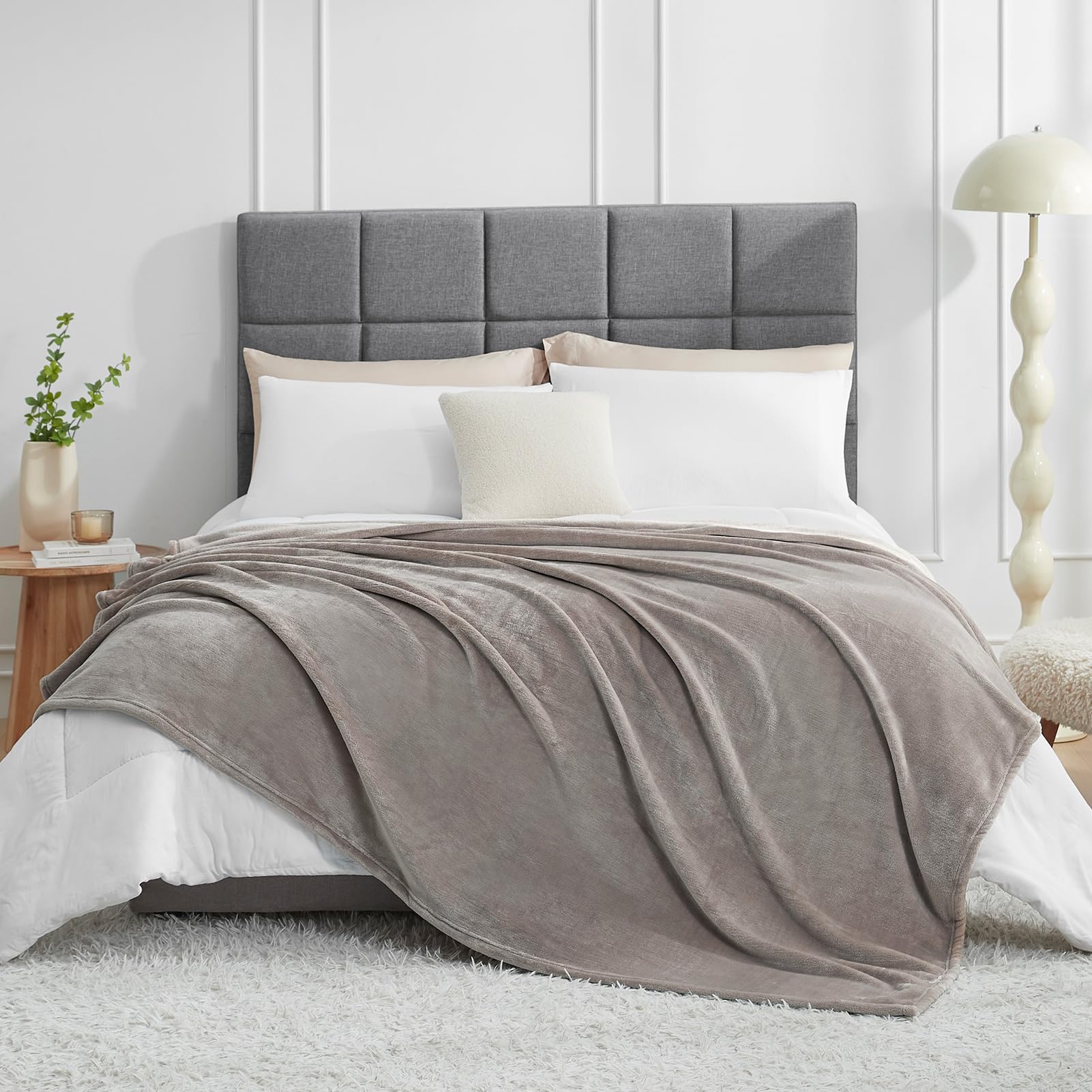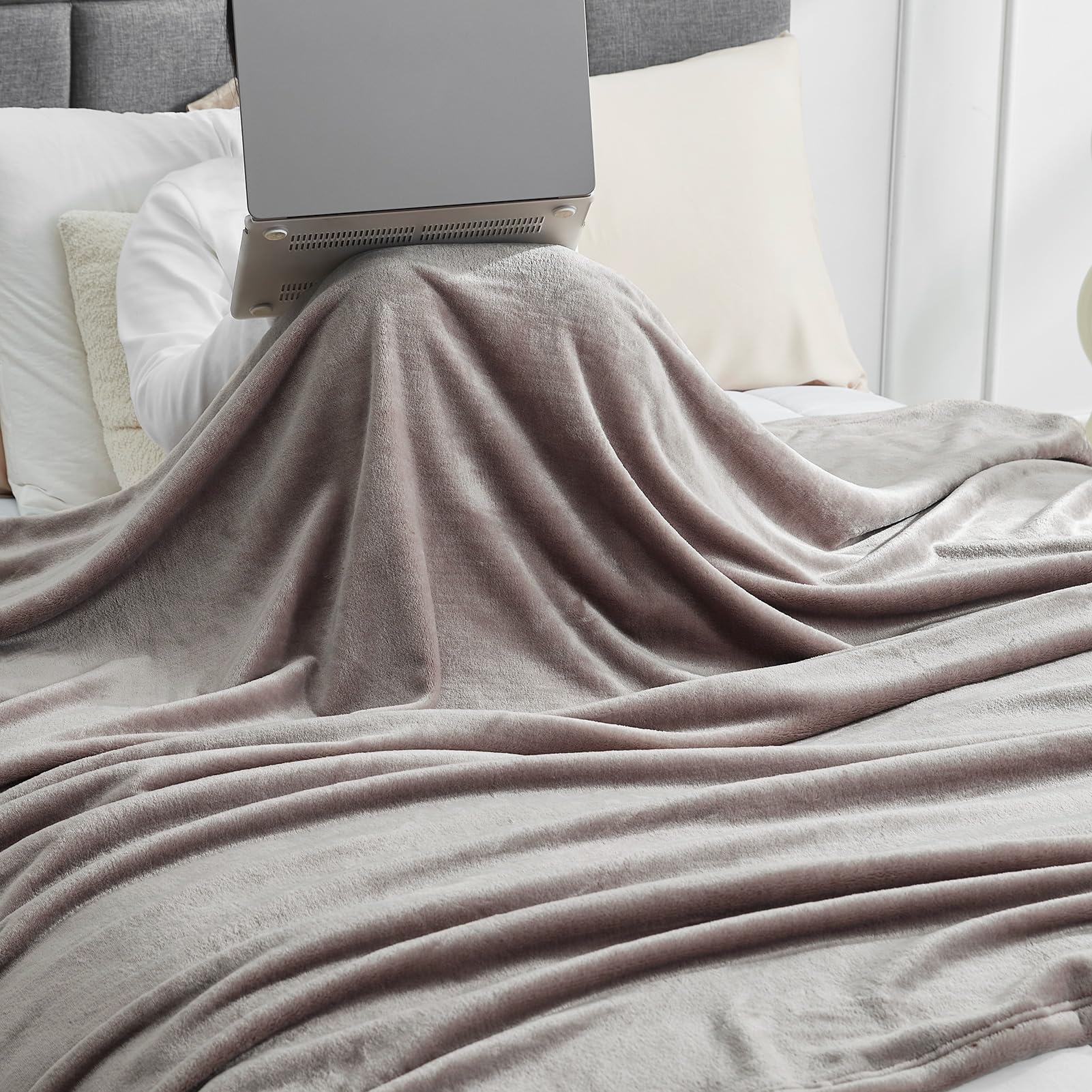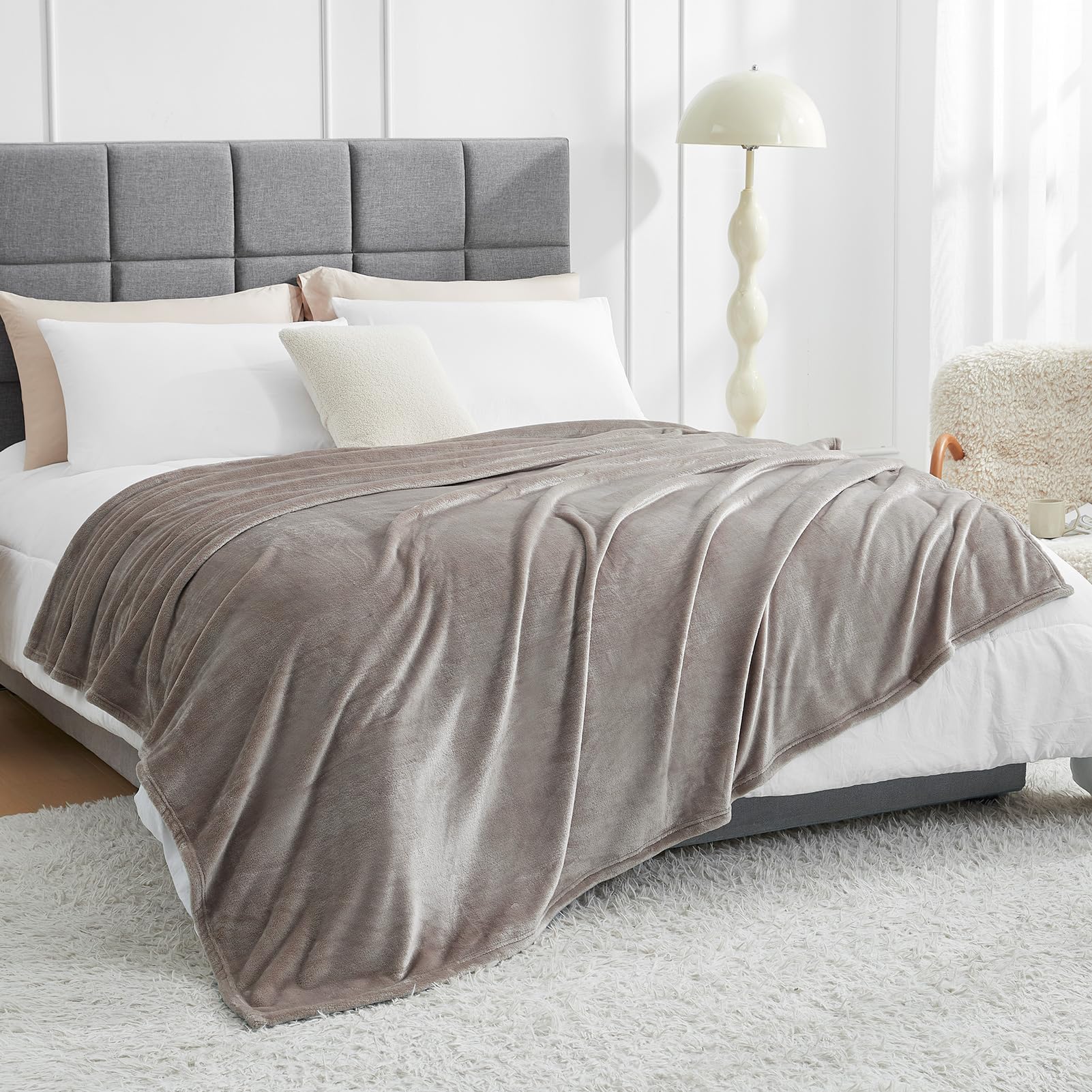 Hansleep 毛布 もうふ 夏用 ダブル ブランケット 大きめ 180x200cm 大判 マイクロファイバー 柔らかく 肌触り フランネル 洗える 軽量 静電防止 四季適用 (180x200ダーク グレージュ)