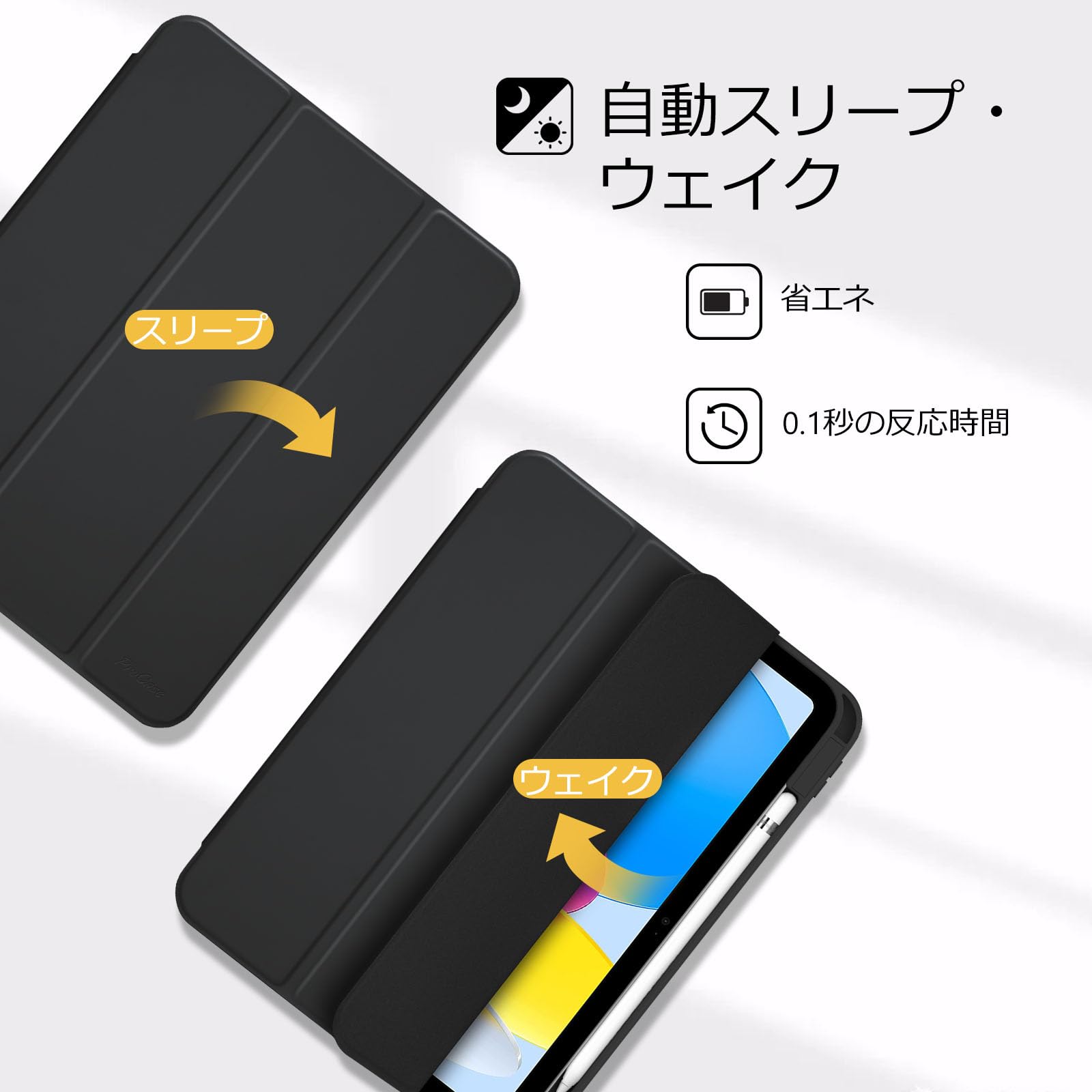 自動スリープ/ウェイク機能とタッチIDのロック解除機能をサポートします。マグネット内蔵でケースを固定し、全ての機能へ自由にアクセスできます。