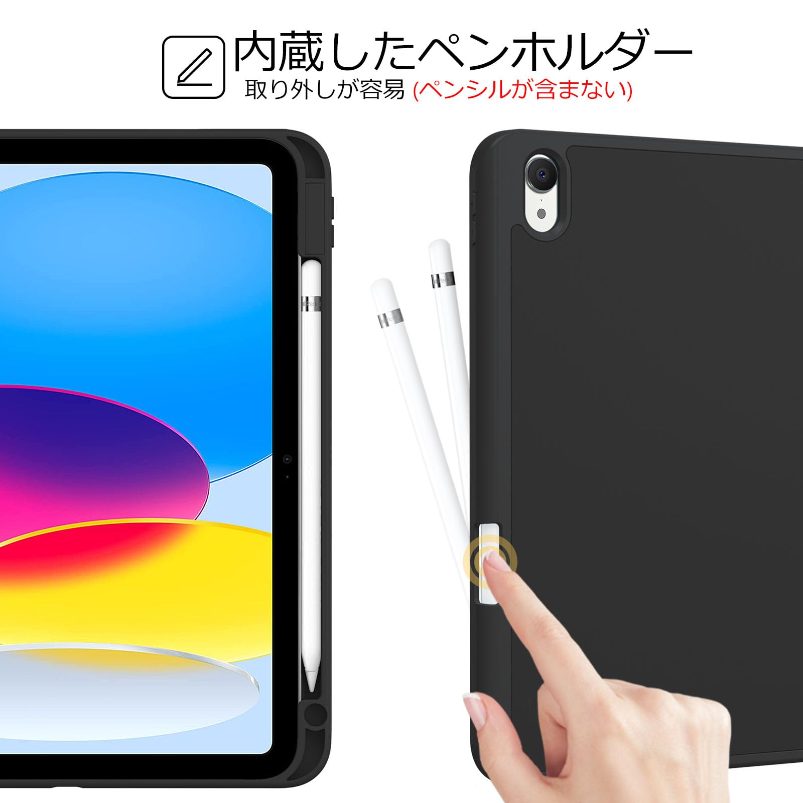 ペンホルダー付いて、Apple Pencil(1世代)の収納とワイヤレス充電もサポートします。