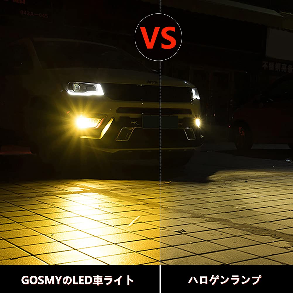 GOSMY LED フォグランプ H8 H11 H16 バルブ イエローフォグ黄色 12V車対応 2000LM CSPチップ搭載 3000K 50000時間以上寿命 (2個入り)