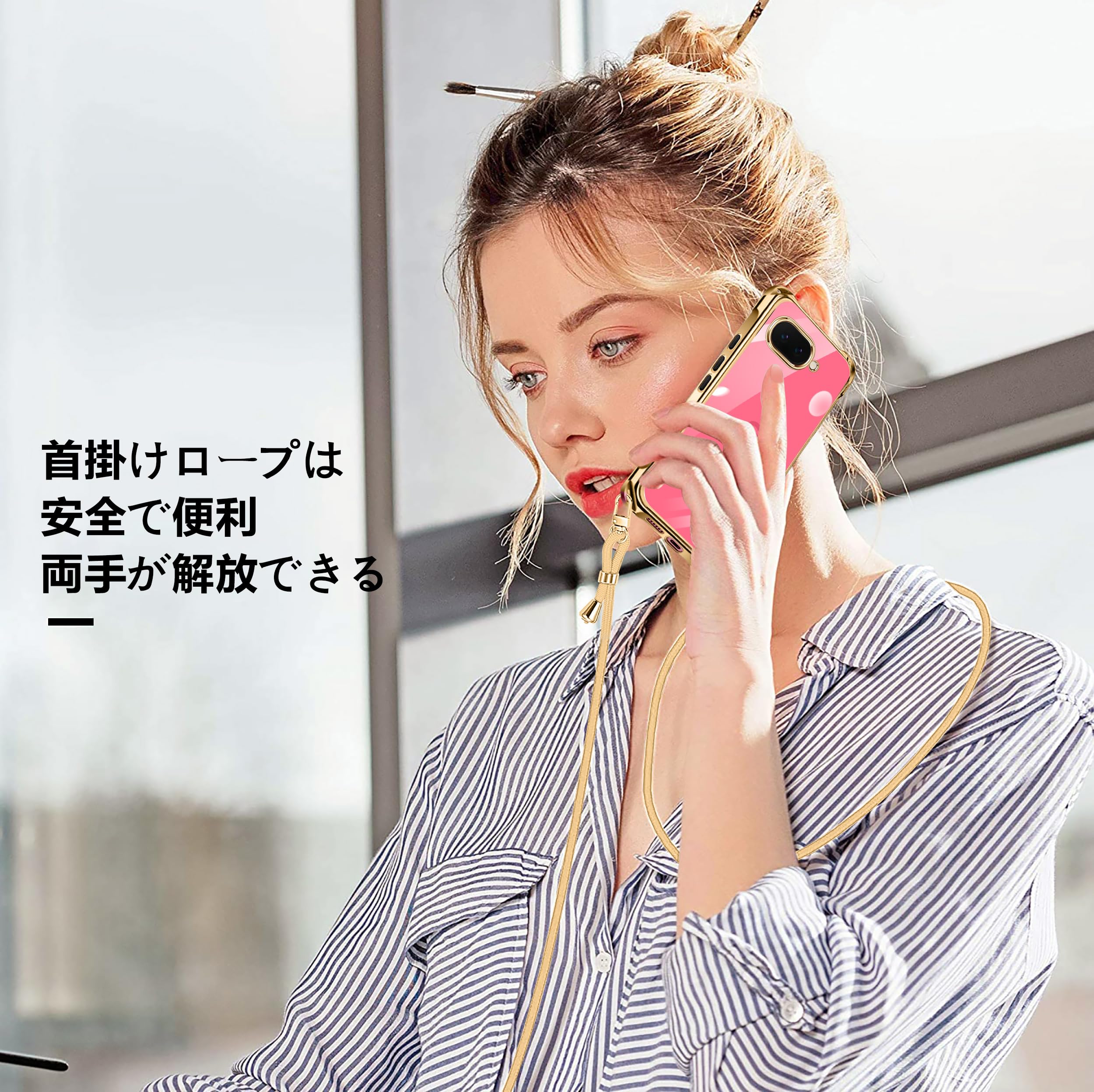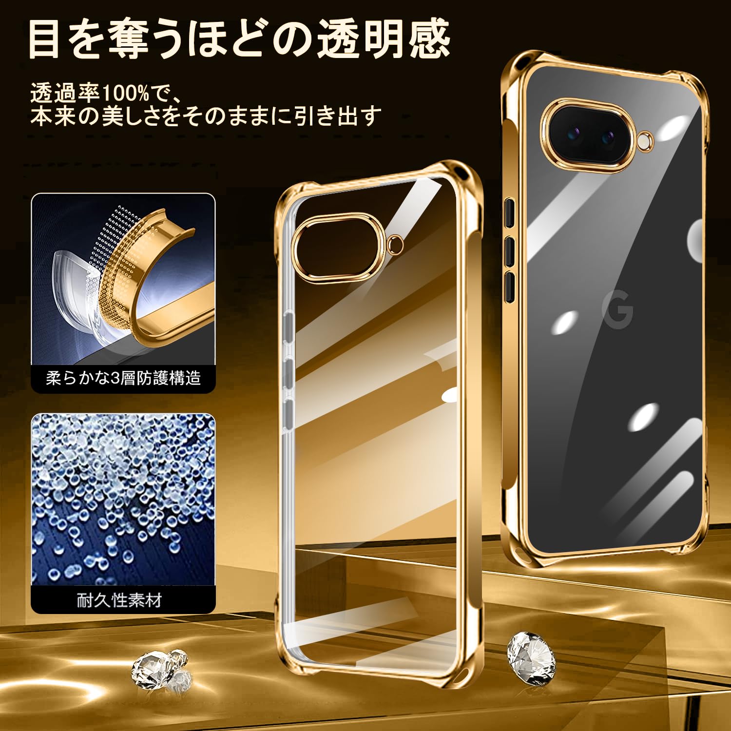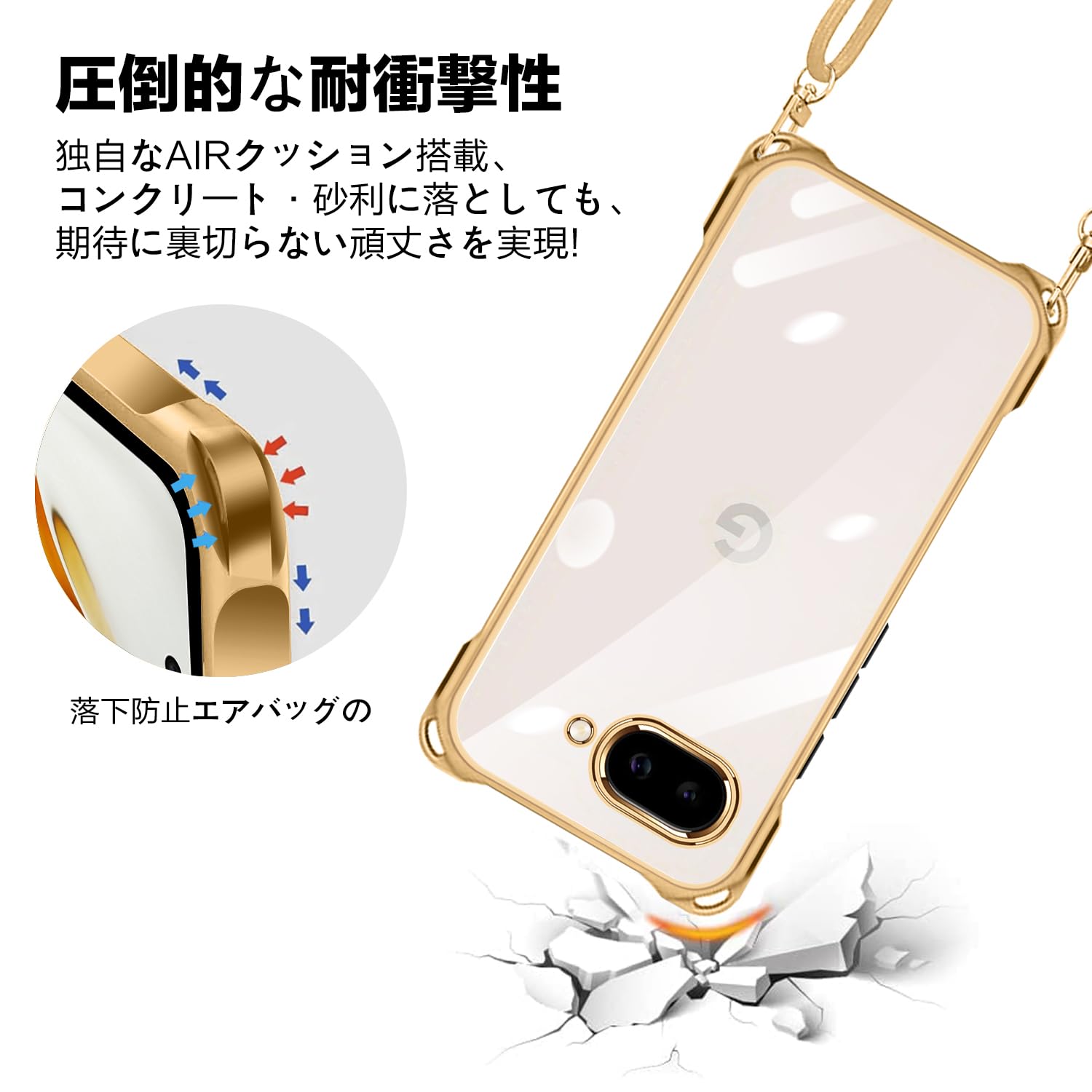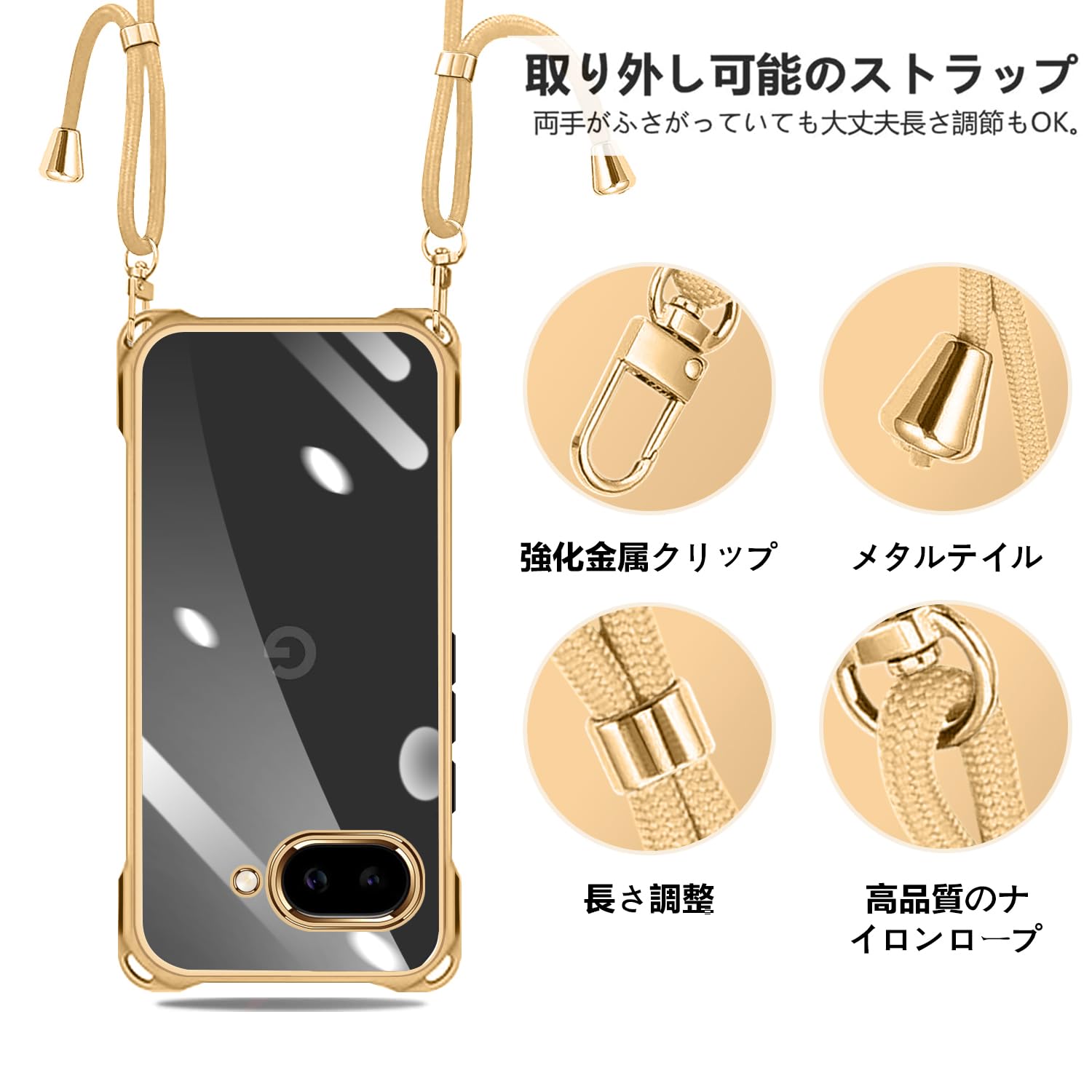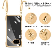 【在庫処分】Google Pixel 9a 用 ケース クリア ショルダー pixel9a 用 スマホケース ピクセル 9A カバー 肩掛け 斜めかけ 縄掛けケース 耐衝撃 透明 薄型 軽量 TPU 携帯ケース 紐付き 斜めがけ 織りストラップ付き ネックストラップ ショルダー ケース 縦/横 2WAY 長さ調整可能 取り外し可能 落下防止 紛失防止 ワイヤレス充電対応 (ゴールド)