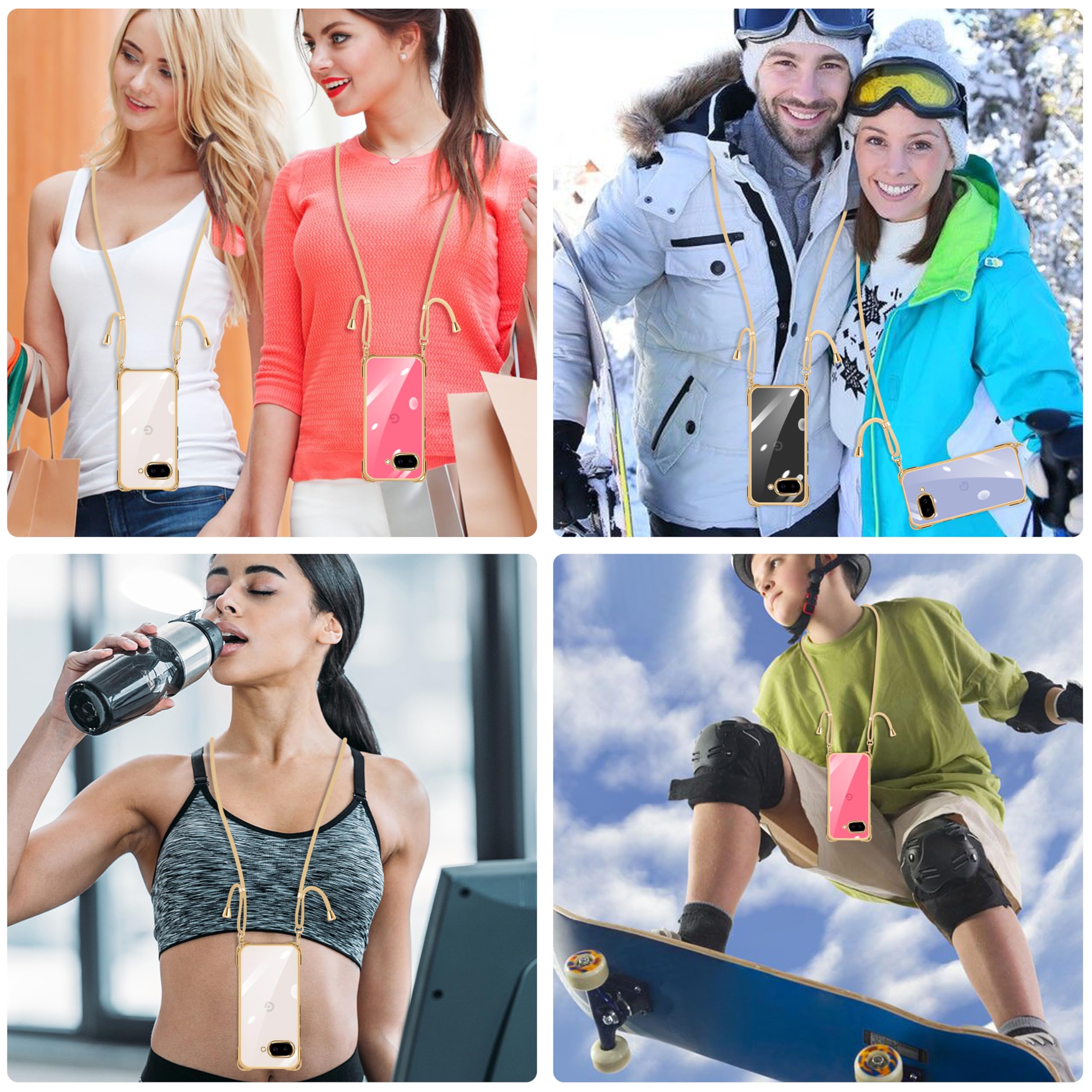 Google Pixel 9a 用 ケース クリア ショルダー pixel9a 用 スマホケース ピクセル 9A カバー 肩掛け 斜めかけ 縄掛けケース 耐衝撃 透明 薄型 軽量 TPU 携帯ケース 紐付き 斜めがけ 織りストラップ付き ネックストラップ ショルダー ケース 縦/横 2WAY 長さ調整可能 取り外し可能 落下防止 紛失防止 ワイヤレス充電対応 (ゴールド)