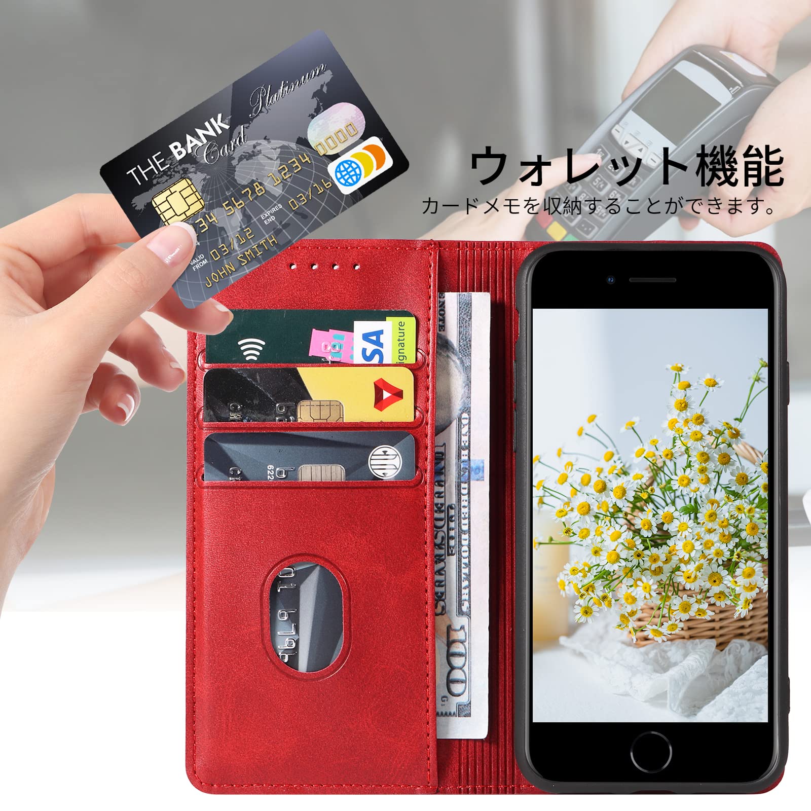 【在庫処分】iPhone SE2 ケース 第2世代 第3世代 iphone8/7 ケース 手帳型 スマホケース 携帯カバー PUレザー カード収納ケース マグネット式 スタンド機能アイフォンse 4.7インチ対応 360度保護 PinLiSheng (ダークレッド iPhone SE2 iPhone SE3 iPhone8 iPhone7) | nico3588