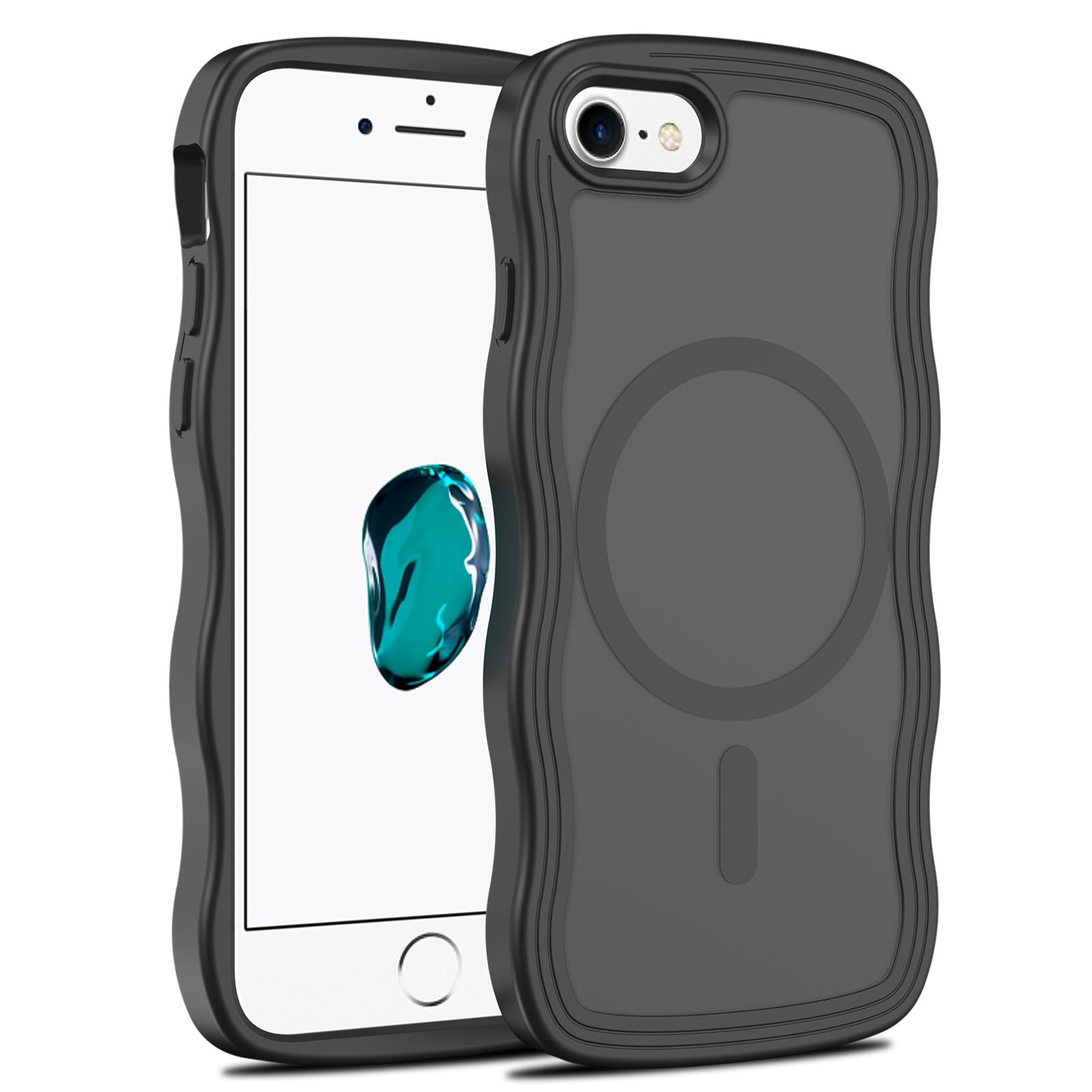 iPhone SE ケース 第2世代 第3世代 iPhone8/7ウェーブ TPU+PC マグセフ 可愛い 耐衝撃 全面保護 黄ばみなし 波状エッジ ソフトシェル かわいいうねうね 韓国 人気 ワイヤレス充電対応 なみなみ カバー・ブラック
