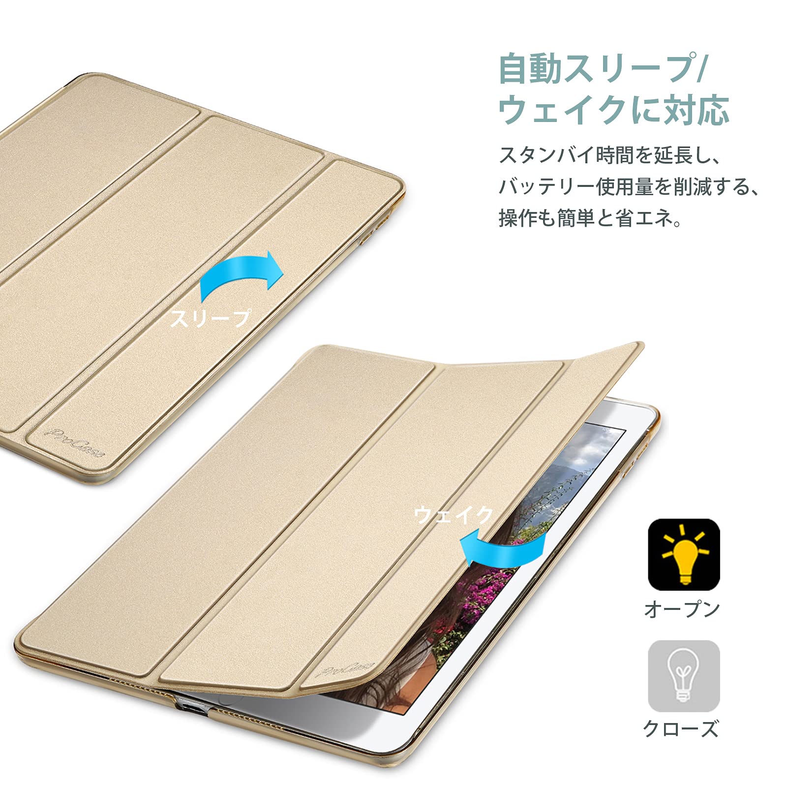【特価商品】ProCase iPad 9.7(旧型)ケース スマート 超スリム スタンド フォリオ保護ケース 半透明フロスト バックカバー 対応機種:iPad 9.7 第6世代 2018 / 第5世代 2017 - ゴールド