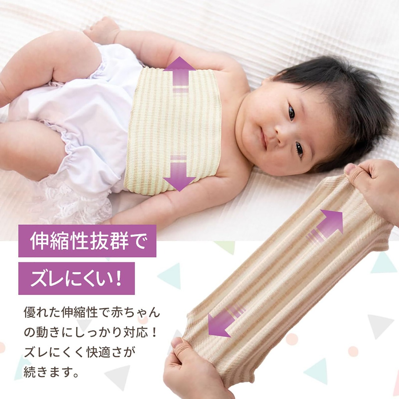 MOMSMENUの腹巻きは、赤ちゃんから3歳までのお子様に最適なオーガニックコットン製品です。(伸縮性)に優れたギャザーでお腹まわりにやさしくフィットし、締め付けがなく快適にお使いいただけます。