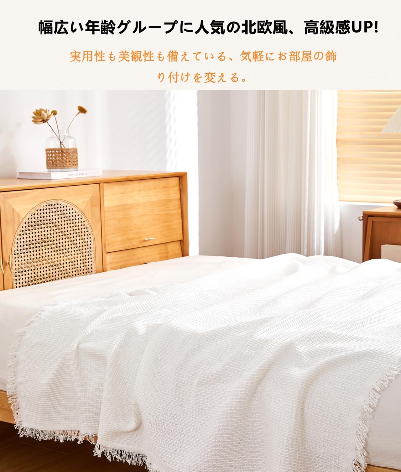 シンプルなデザイン フリンジ付き: 幅広い年齢グループに人気の北欧風、高級感UP。お部屋内のインタリアと合いやすく、使うと室内の雰囲気も明るくなりますぞ, 両面が違っていますが, どちらの面も正常に利用できます。飽きたときはベッドにかけたり多目的でつかえます。
