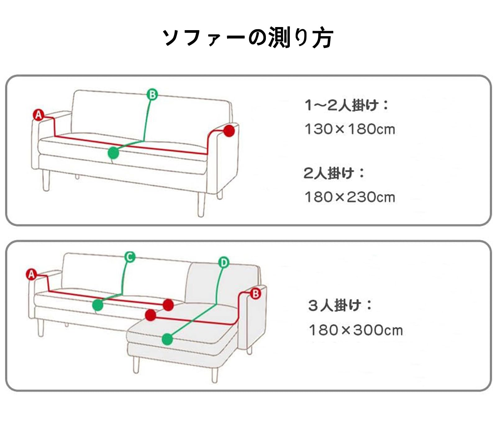 サイズ、素材:130*180cm(1~2人掛け)、180*230cm(2人掛け)、180*300cm(3人掛け)。素材:高品質 コットン、ポリエステル、快適で通気性に優れて。