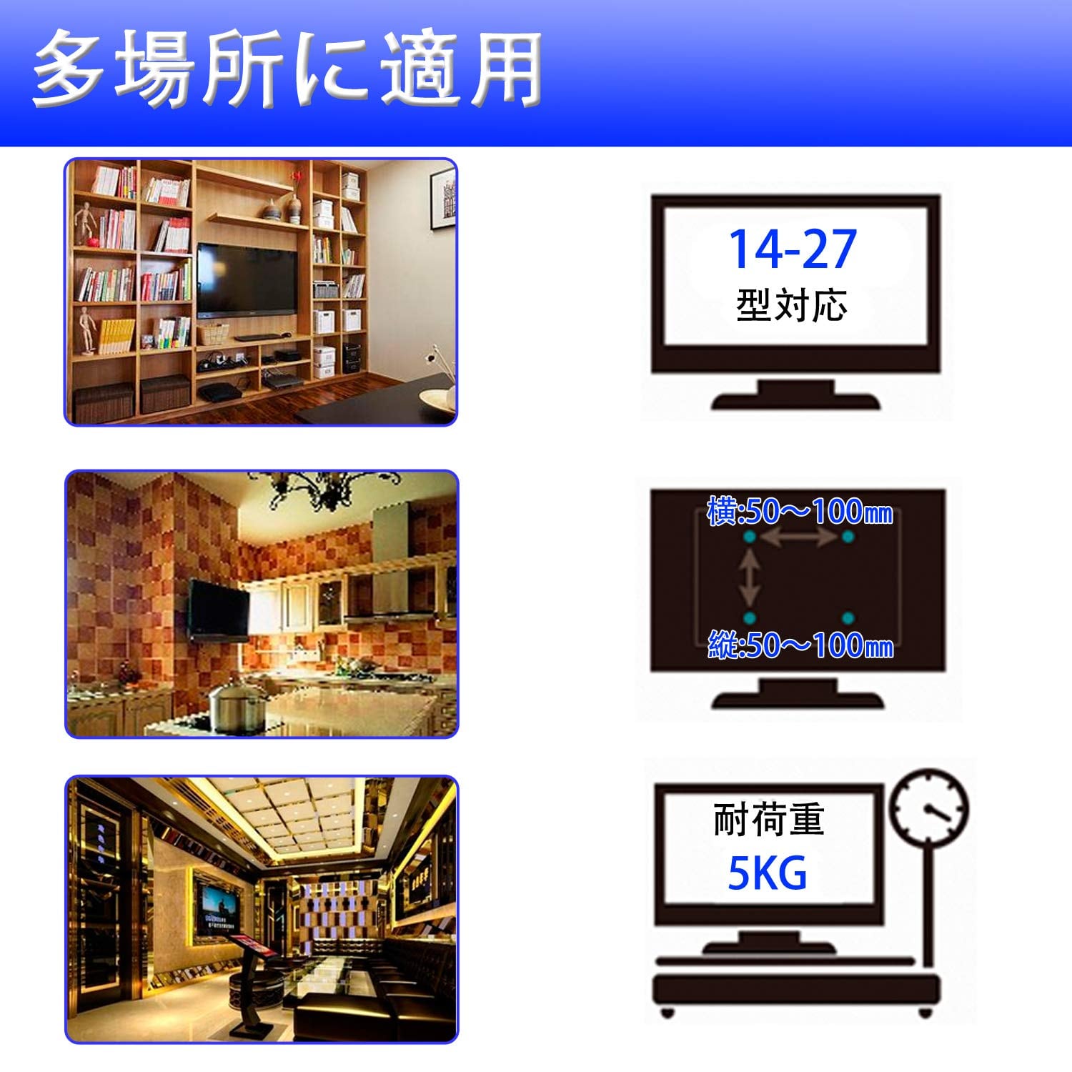 【液晶モニター壁掛け金具~多くのテレビ壁掛け可能】14~27型程度までの設置が可能で、耐荷重は5kgです。テレビ用ブラケットはvesa 50X50、75X75、100X100mmに対応しています,壁掛けテレビ 金具。