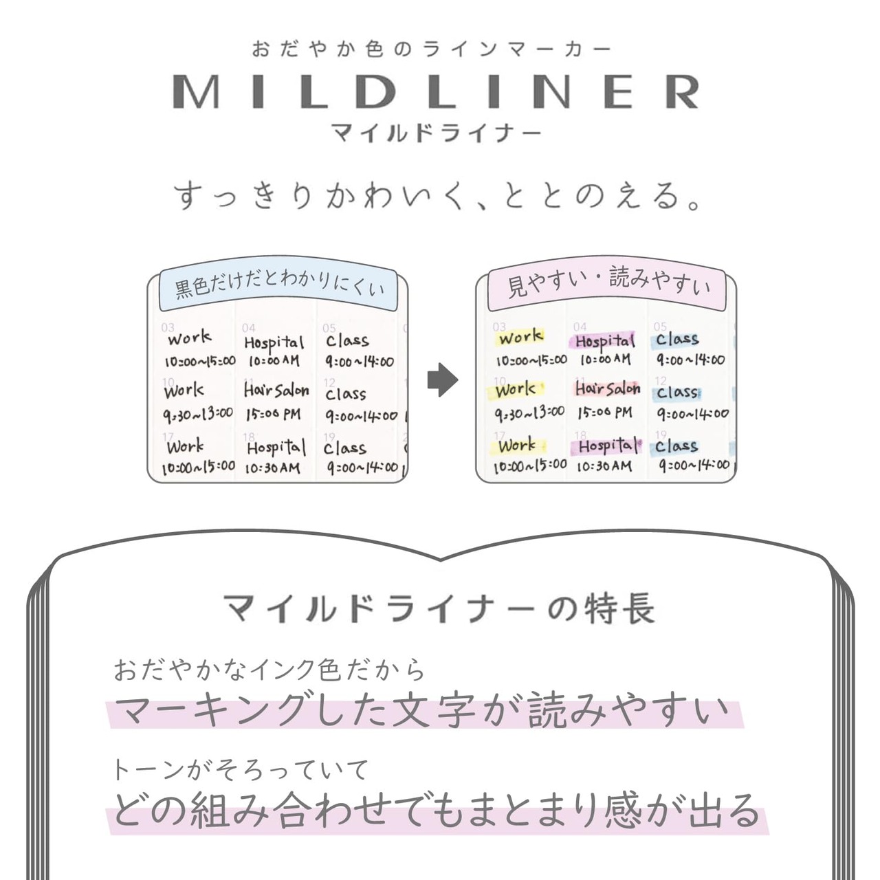 【マイルドライナー】おだやか色のラインマーカー