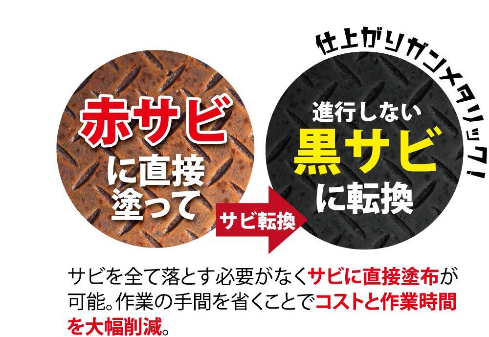 水性サビ転換塗料サビキラープロ(PRO)。サビ落とし不要で、サビに直接塗るだけでサビの進行・再発を強力に防ぎます。