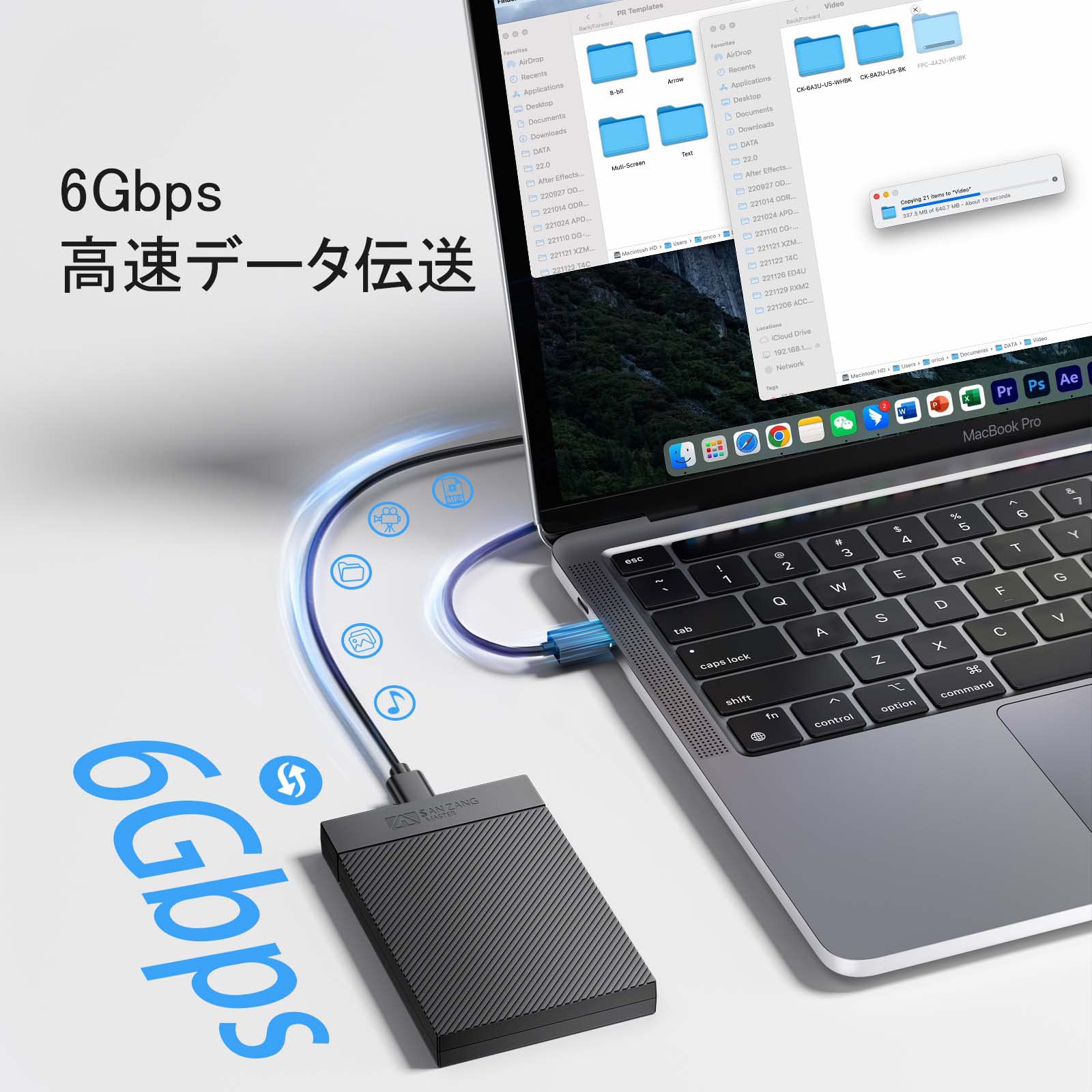 【6Gbps高速転送速度】この2.5インチ ssd ケースはUASP対応のUSB3.0接続なので、最大速度(理論値)6Gbpsで通信可能 1GBファイルをわずか3秒で転送完了!※上記のデータはデバイス、お使いの環境などによって異なります。