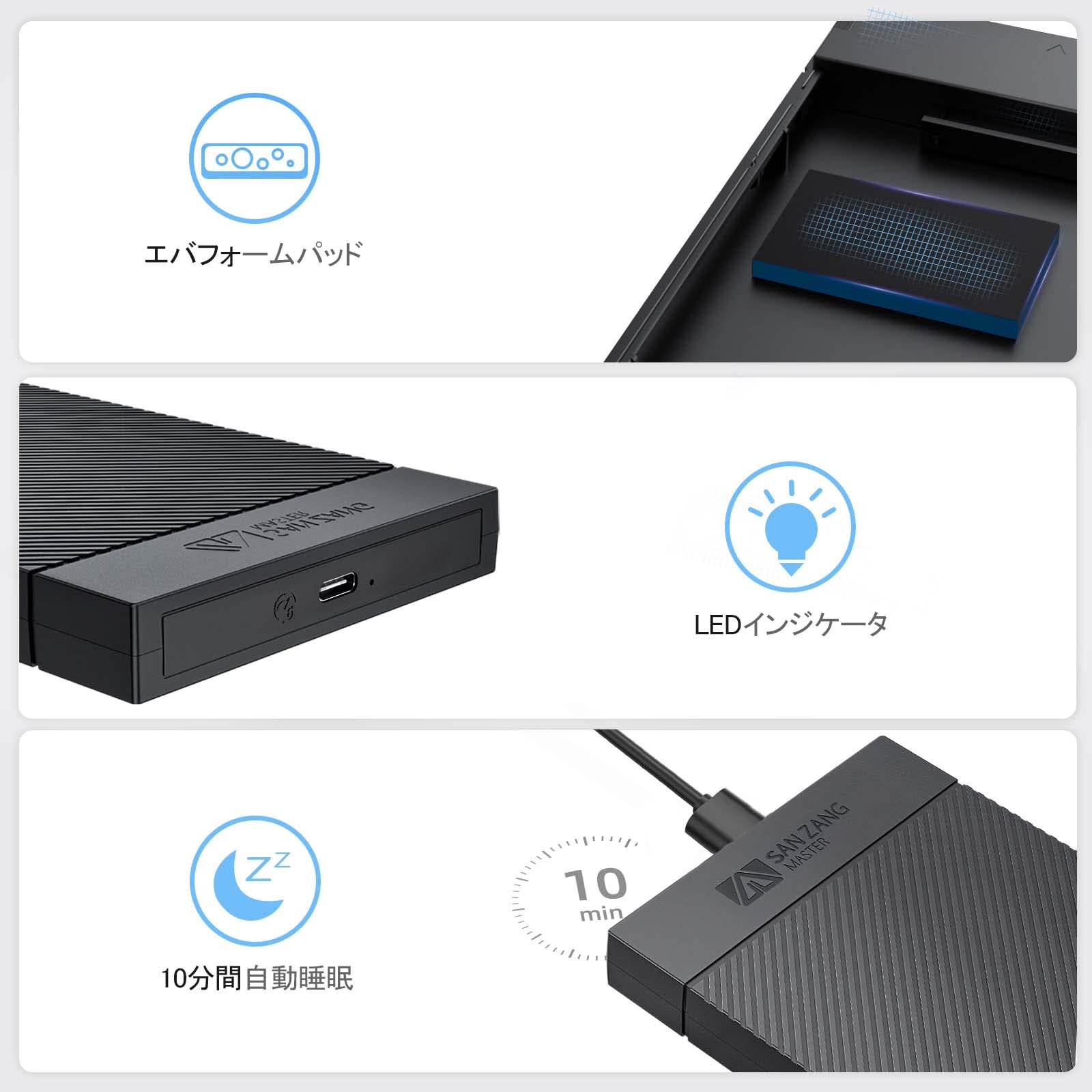 SAN ZANG MASTER 2.5インチ HDD ケース USB 3.1 6Gbps接続 SATA UASP対応 ssd ケース 2.5インチ 工具不要 HDD外付けケース 簡単着脱 ハードディスクケース9.5mm/7mm HDD/SSD対応 2.5インチ ssd ケース Mac OS/Windows/Linux等に対応 【USB C-USB A ケーブル付き】ブラック