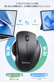 【マルチ接続・2.4GHz&Bluetooth5.2】 最先端の接続性能を持つこの マウス Bluetooth 5.2と2.4GHz無線の両方をサポートし、複数のデバイスと簡単にペアリングが可能で、切り替えもスムーズ。パソコン、タブレット、スマートフォンなど、さまざまなデバイスとの互換性をもつ ワイヤレスマウス は、高速で安定した接続性により、作業の途切れや遅延のストレスから解放されます。また、Bluetooth5.2の採用により、省エネルギーで長持ちするバッテリー寿命も実現された マウス 無線 なので、オフィス、自宅、移動中といった様々なシチュエーションでの使用に最適です。