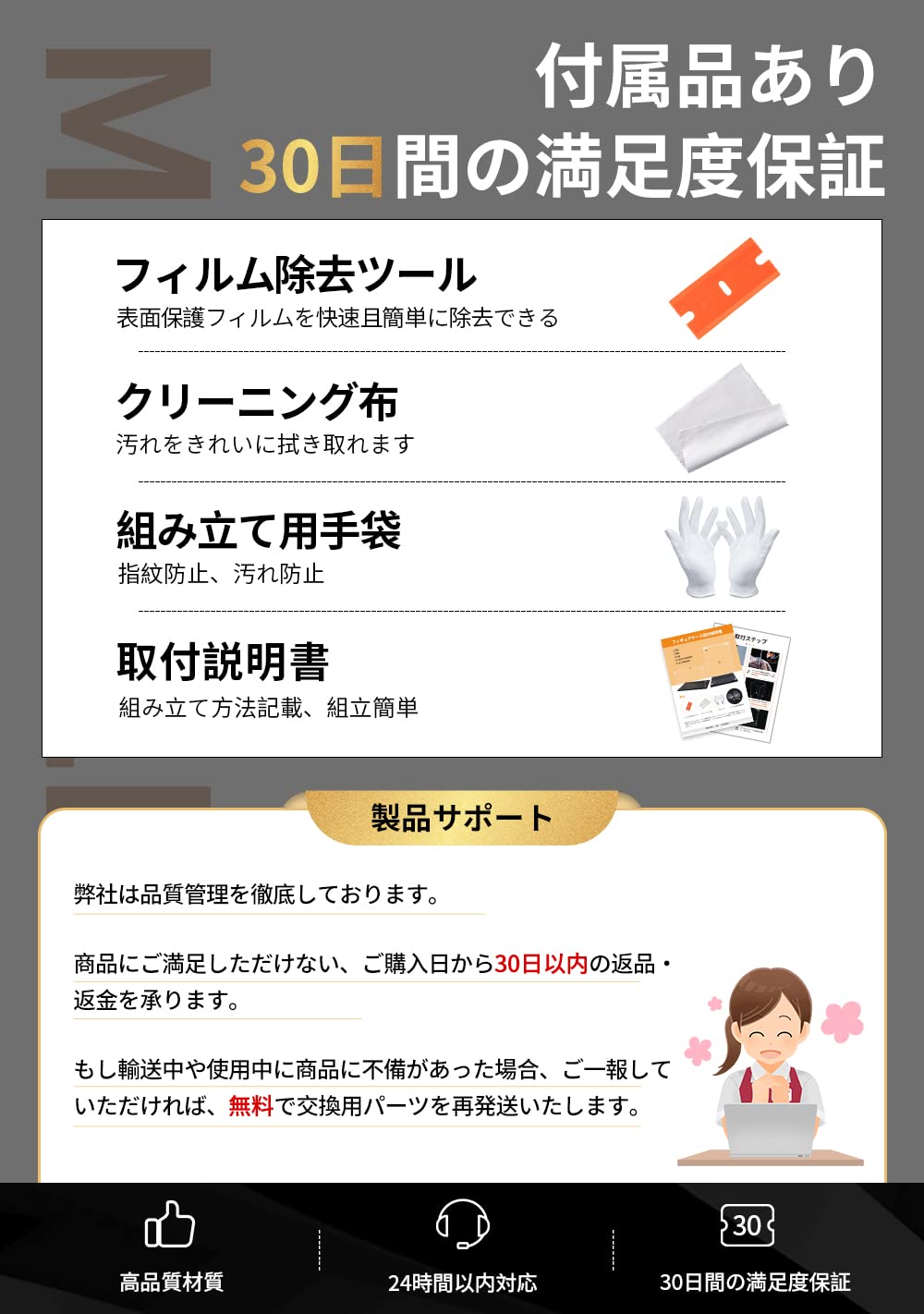 【30日間の期間】商品が不具合のあった場合は商品レビューをする前に弊店まで気軽にご連絡ください。迅速に納得の頂ける対応をさせて頂くことを約束します。